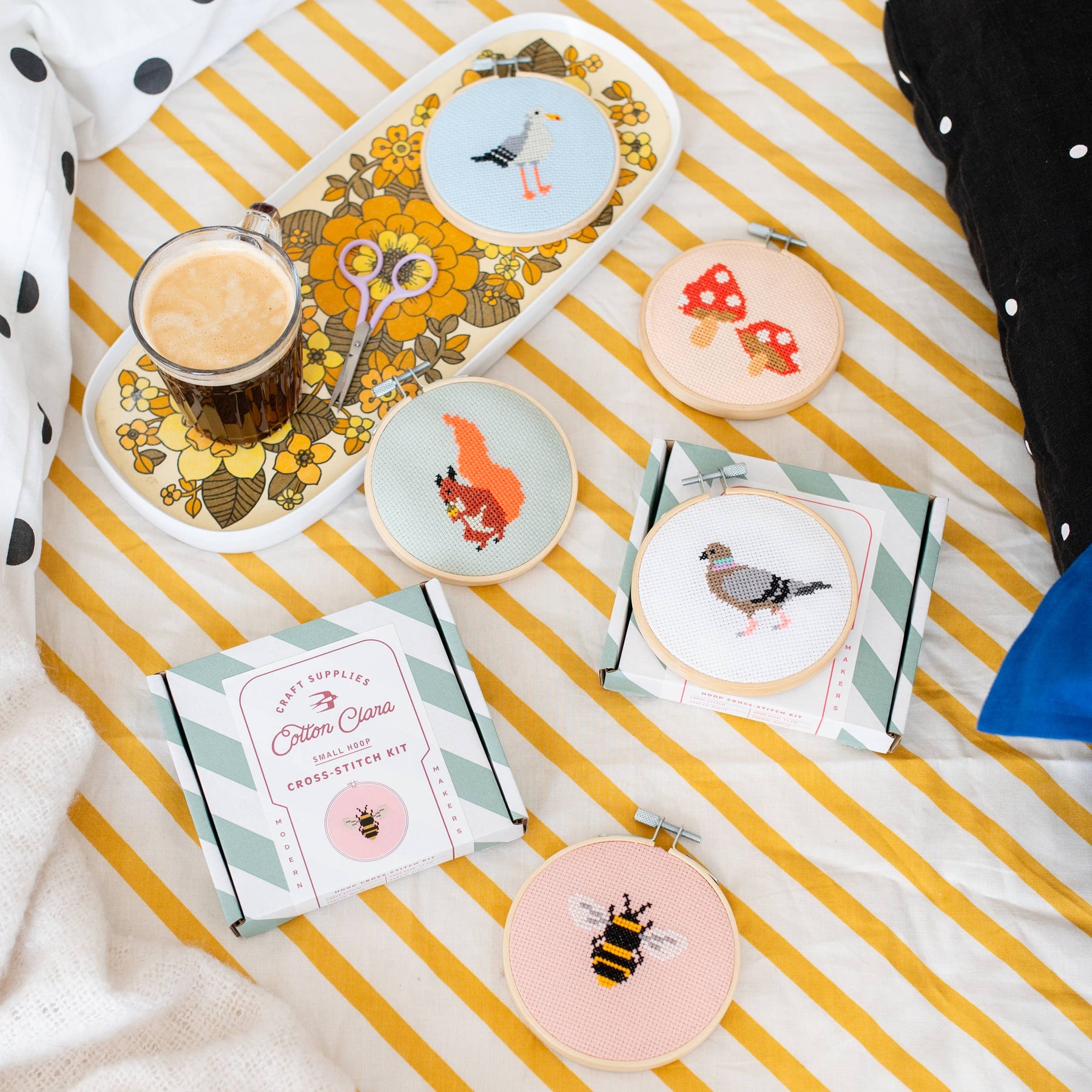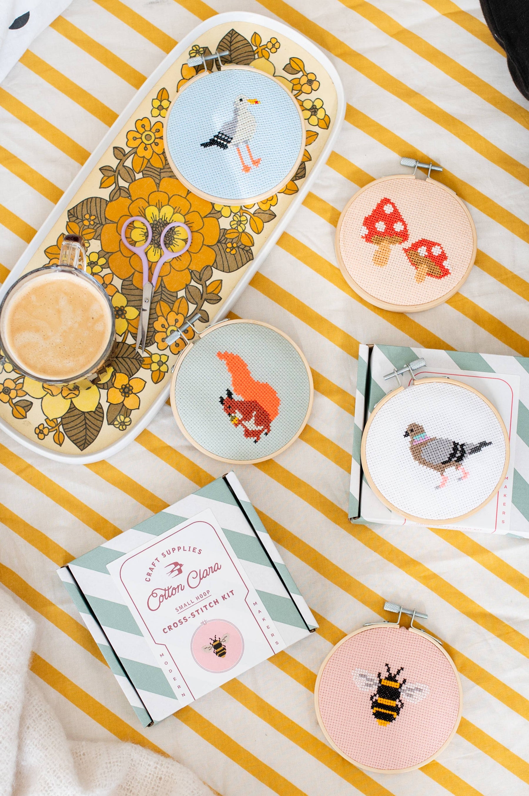 The finished design makes charming wall decor and is a great way to celebrate our favorite garden pollinator. Each eco-conscious kit includes everything you need: 11cm (4.3") embroidery hoop, colored Aida fabric (not pre-printed), pre-sorted embroidery thread, blunt-tipped needle, wadding, full instructions, and a backing disc for easy finishing.