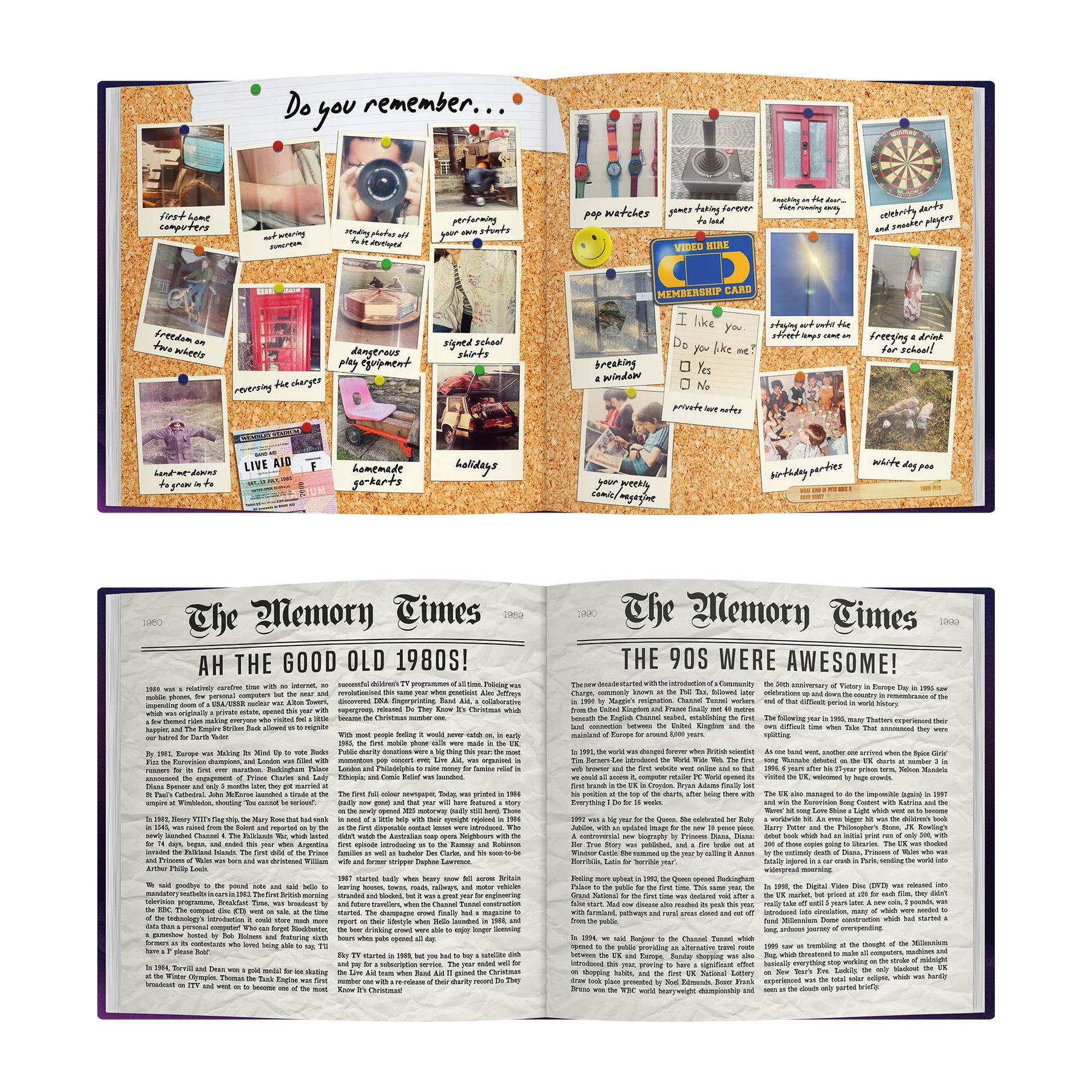 A memory-packed hardback gift book full of nostalgia, recounting not only memories from the decade of birth, but also memories from the decade of the formative teenage years. The perfect, meaningful gift for someone ‘born in the 80s’.