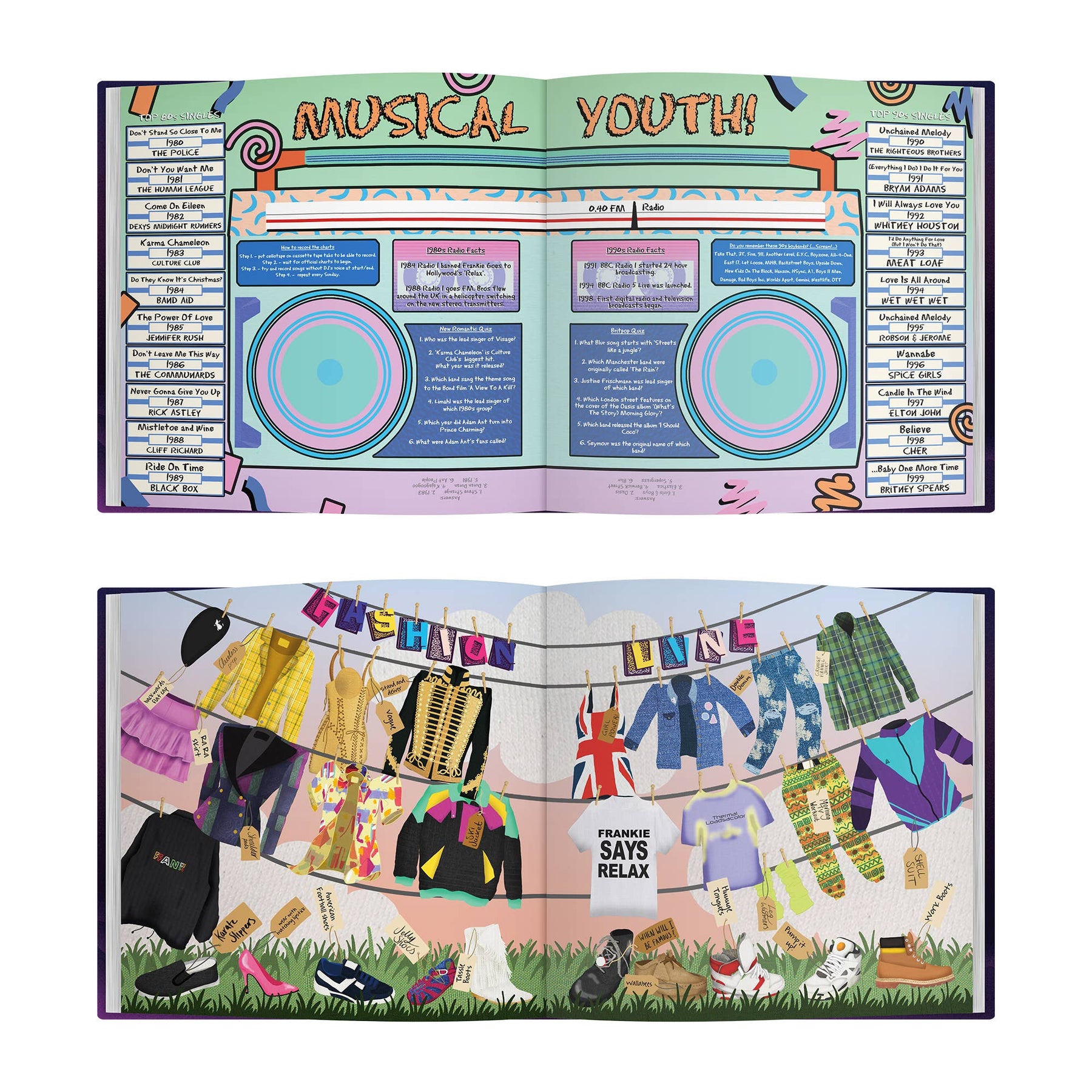 Over two years of research has gone into creating this incredible gift. Covering two decades (1980s and 1990s), the book has beautifully illustrated and colourful double-page spreads, including the foods eaten, the hairstyles experimented with, and the clothes worn, possibly with regret! With a luxury soft touch cover and space for a handwritten personal message in the front, it’s a real celebration of the world that shaped the recipient.