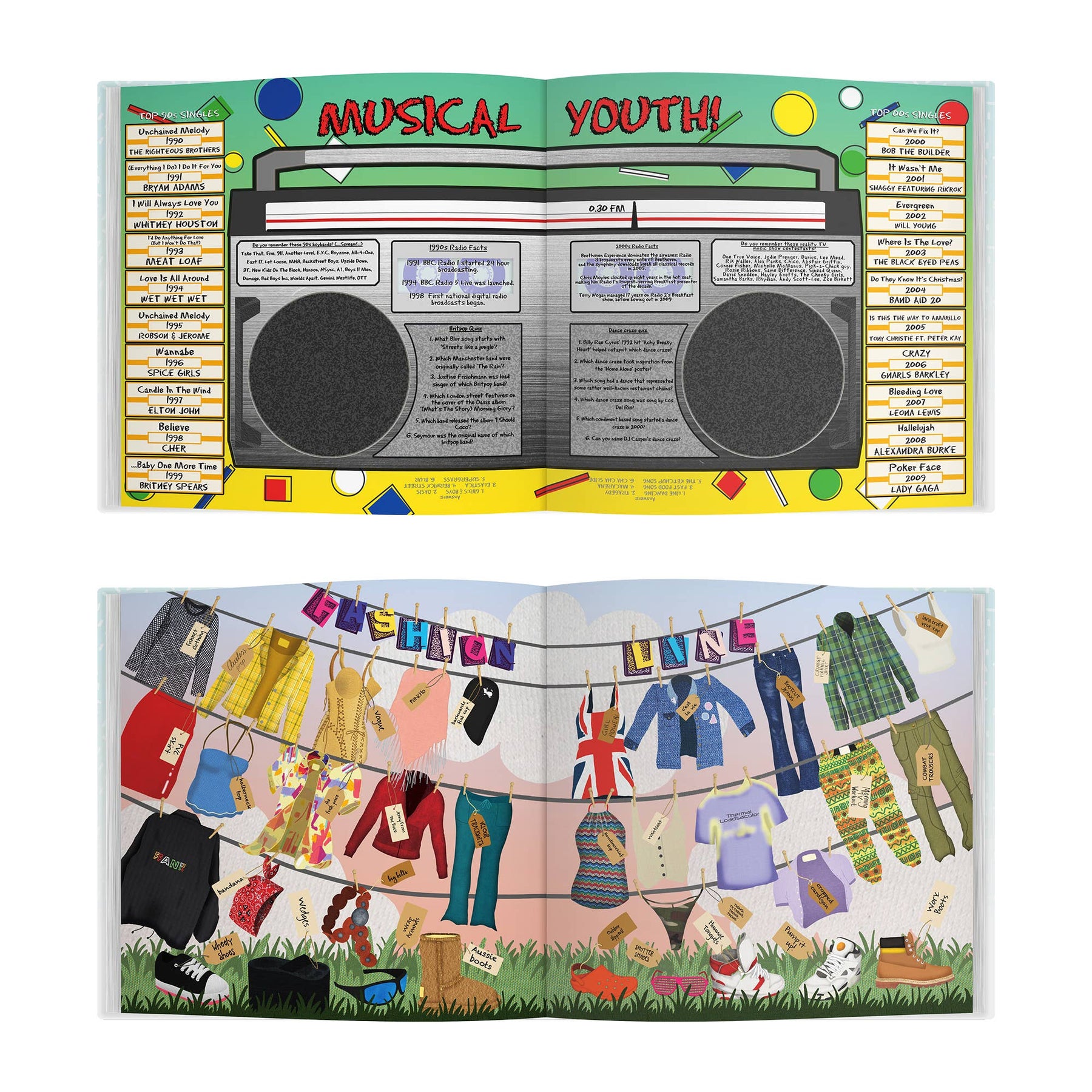 Over two years of research has gone into creating this incredible gift. Covering two decades (1990s and 2000s), the book has beautifully illustrated and colourful double-page spreads, including the foods eaten, the hairstyles experimented with, and the clothes worn, possibly with regret! With a luxury soft touch cover and space for a handwritten personal message in the front, it’s a real celebration of the world that shaped the recipient.