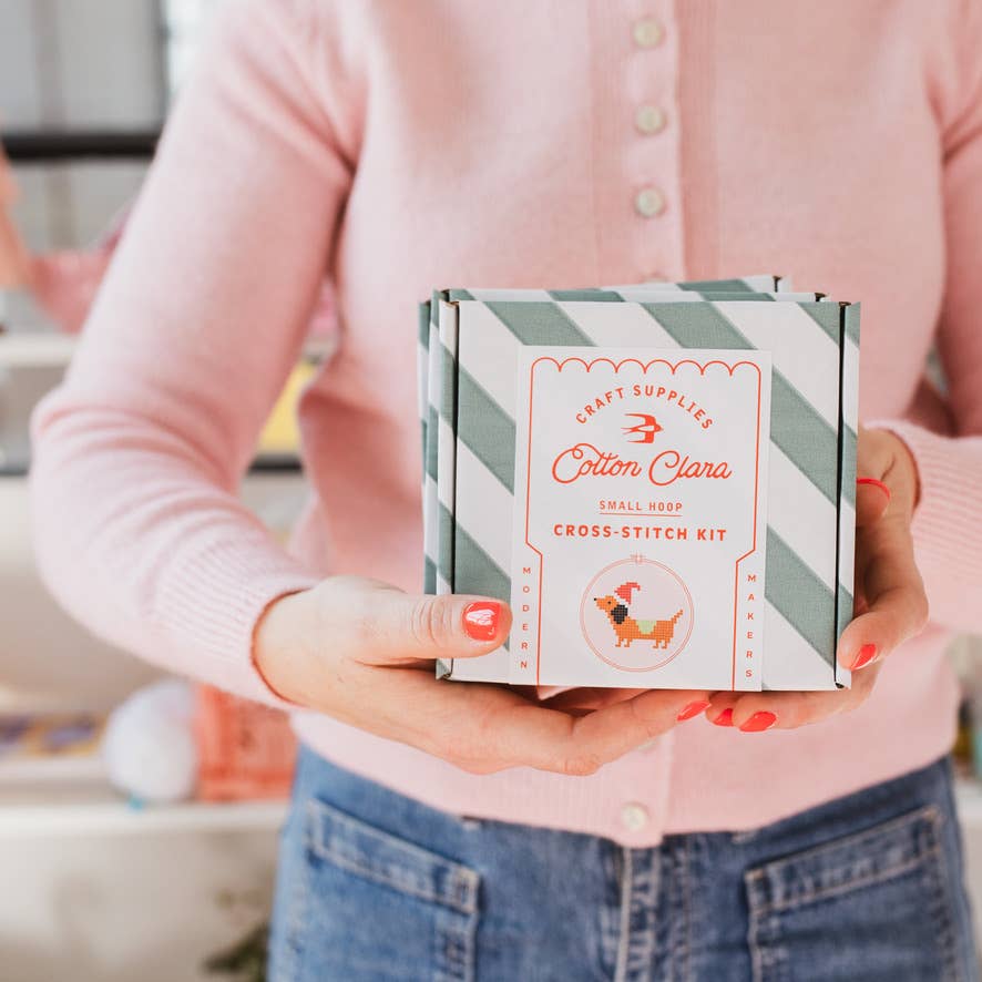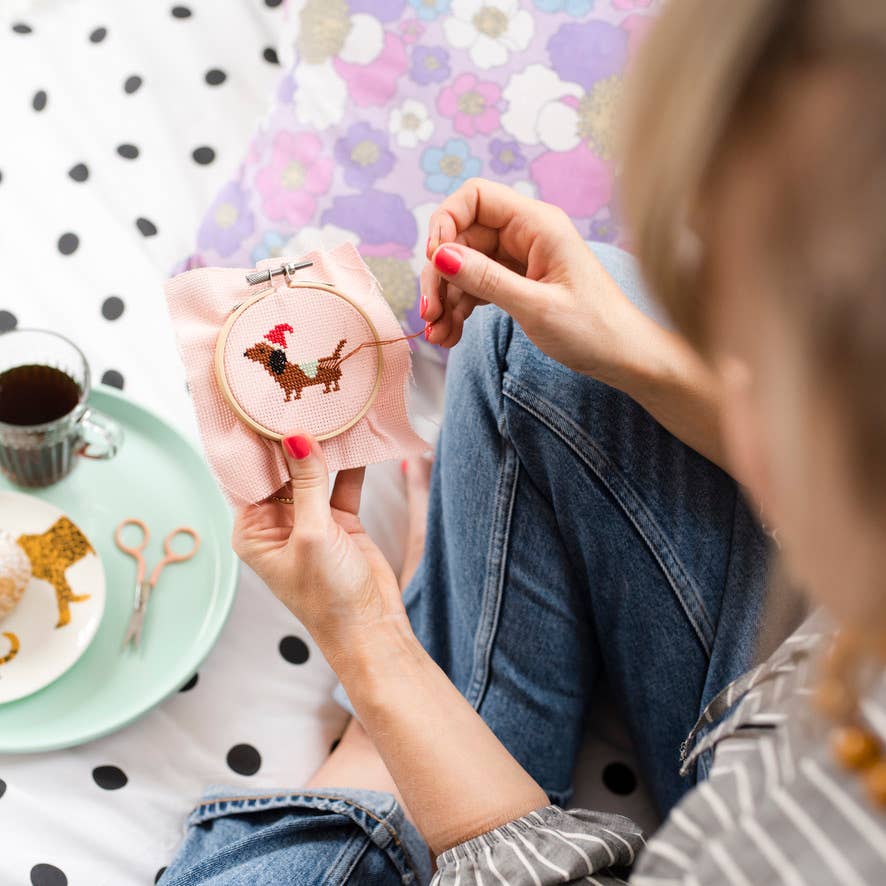 Dachshund Mini Christmas Cross Stitch Kit – 9cm Hoop