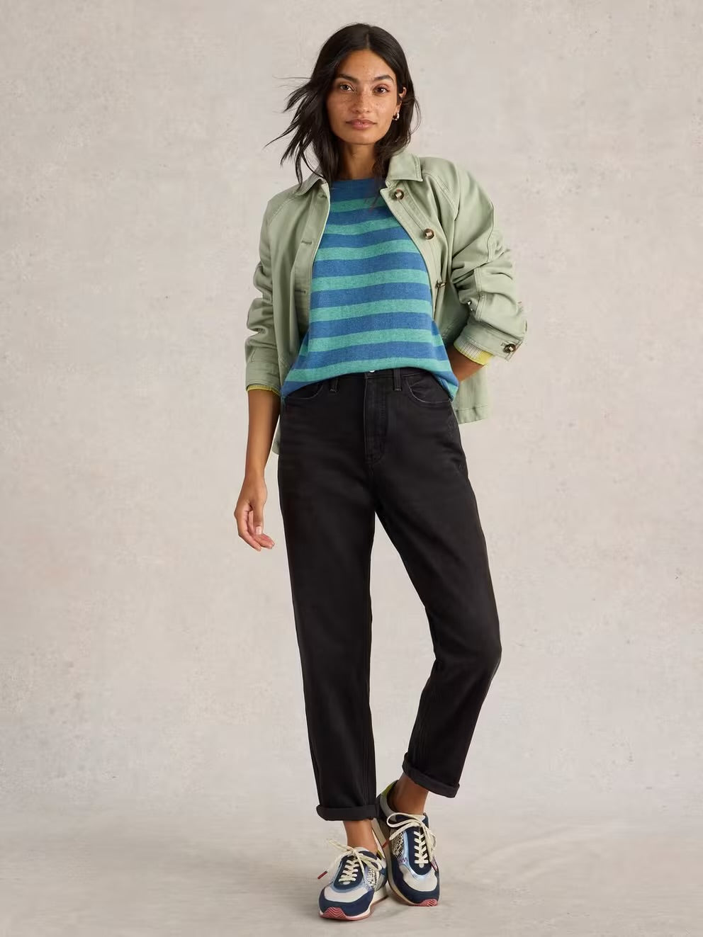 - Washed Black: 64% Cotton, 20% Recycled Cotton, 15% Lyocell, 1%ElastaneMid Denim And Light Denim: 66% Cotton, 20% Recycled Cotton, 13% Lyocell, 1%Elastane