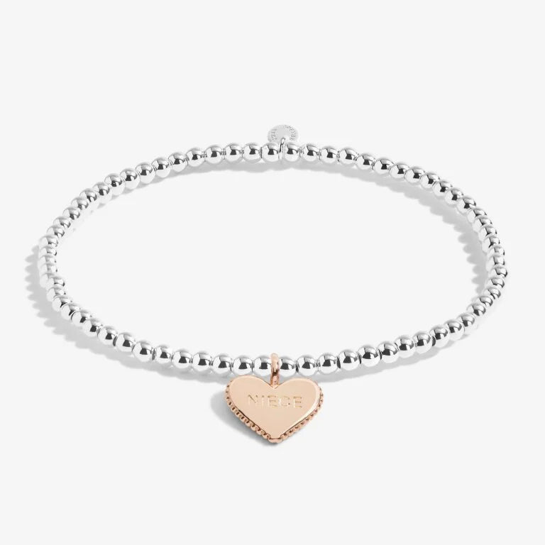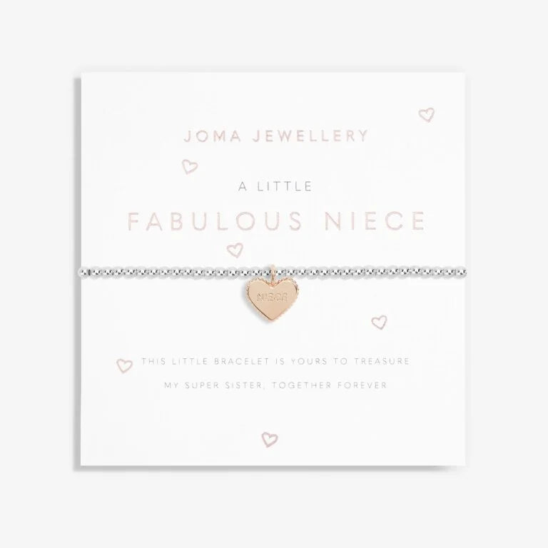 Say hello to our adorable collection of Children’s A Little Bracelets. Designed in silver plating, rose gold plating and gold plating, these sentimental bracelets are as cute as they are stackable, so you can help the little ones in your life to build their very own shining wrist stack in the sweetest way. Our Children's A Little 'Fabulous Niece' Bracelet in Silver Plating And Rose Gold Plating features a silver-plated stretch design for smaller wrists, a pretty charm and a sentiment-stamped card.