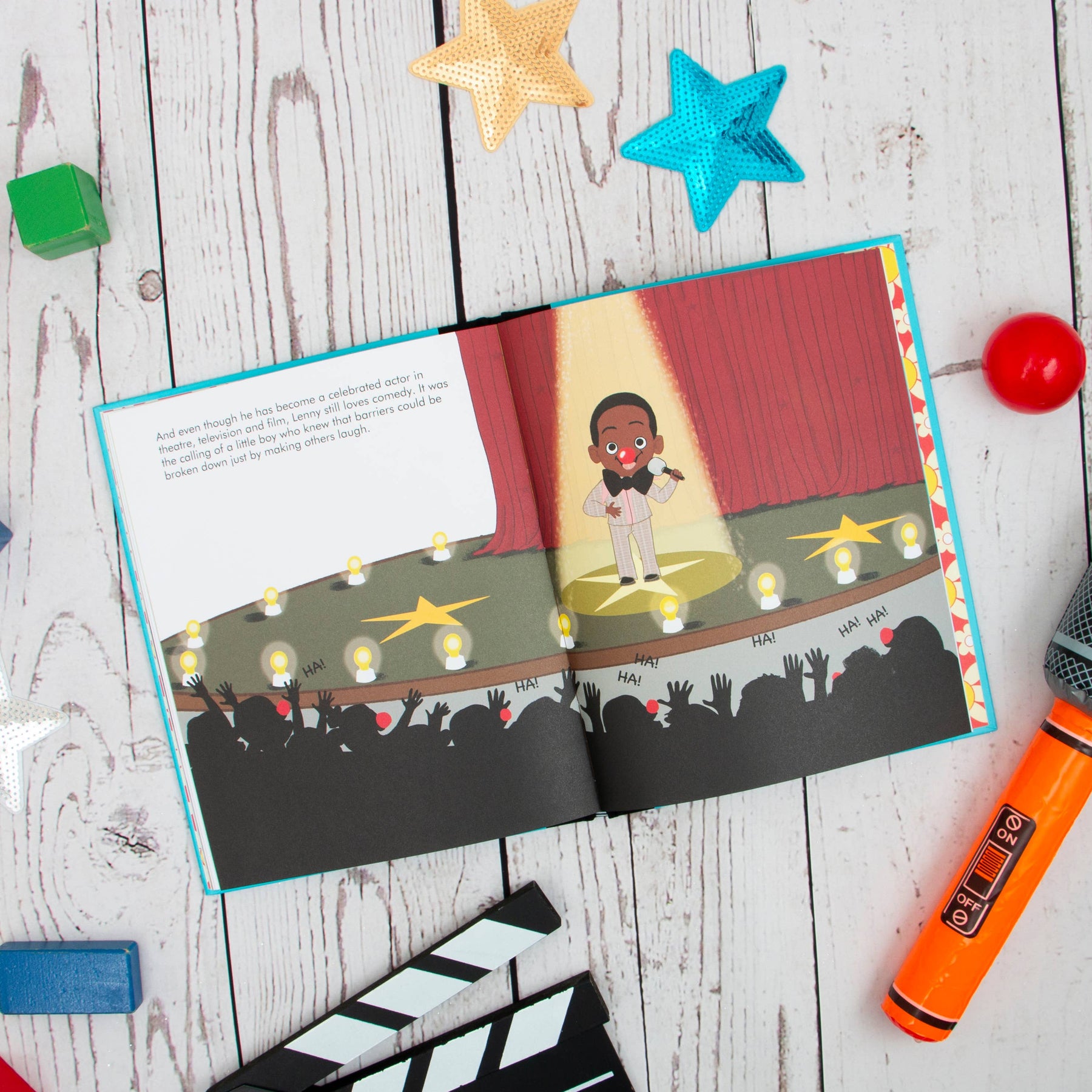 Ever since he was small, Lenny Henry wanted to be a comedian. At home in Dudley, England, he would pretend to be the characters he watched on TV, copying scenes from his favourite shows to entertain his six brothers and sisters. But life wasn't always easy, and at school Lenny found himself the subject of racist bullying—until he figured out a way to beat the bullies using humour. This was when he realised he had a gift: he could make people laugh. He shot to fame aged 16 and the following decades were full of great successes, such as his hugely popular TV programme The Lenny Henry Show.