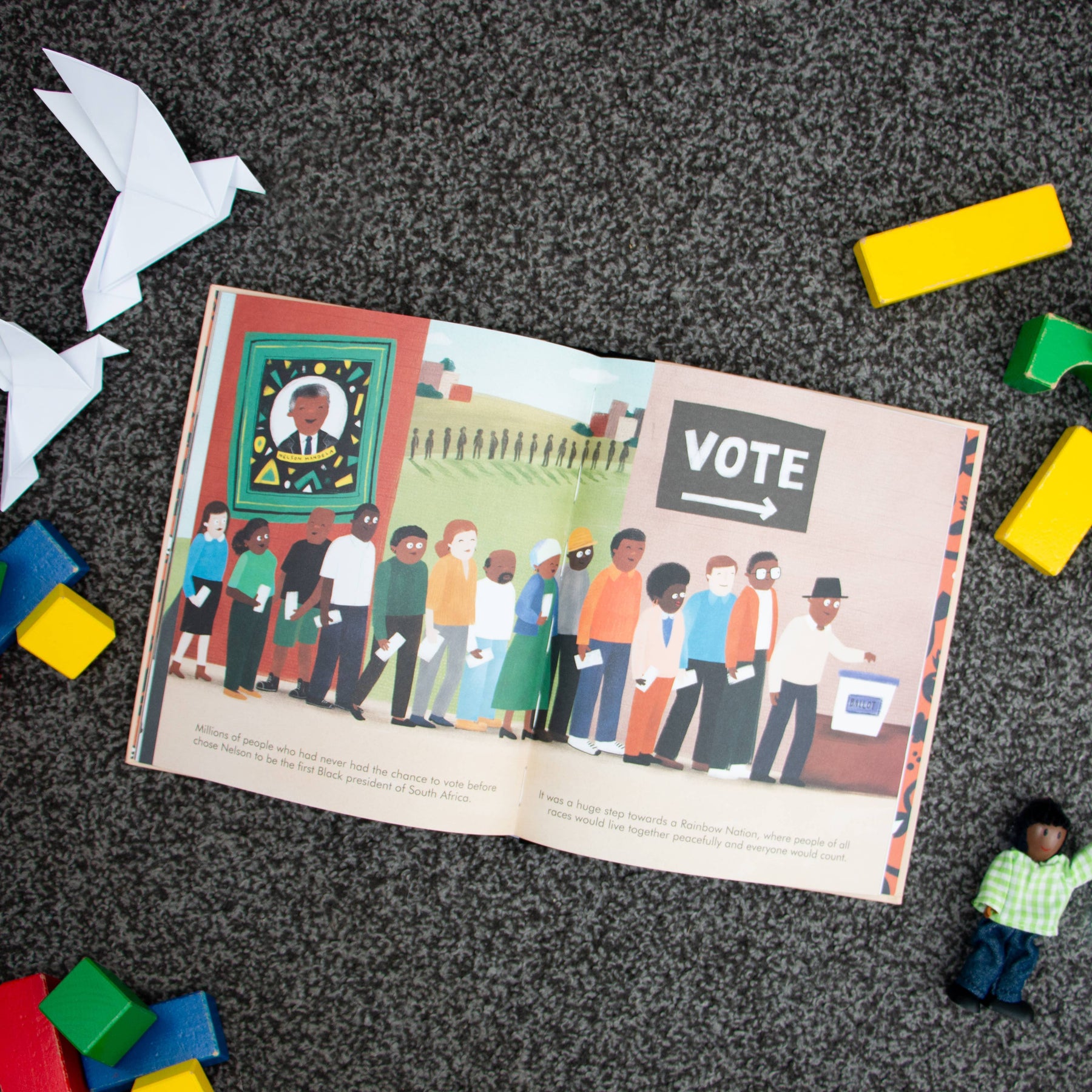 His bravery and resilience was rewarded when he was released from prison and later voted in to become South Africa's first Black president. This inspiring book features stylish and quirky illustrations and extra facts at the back, including a biographical timeline with historical photos and a detailed profile of the activist turned president’s life.