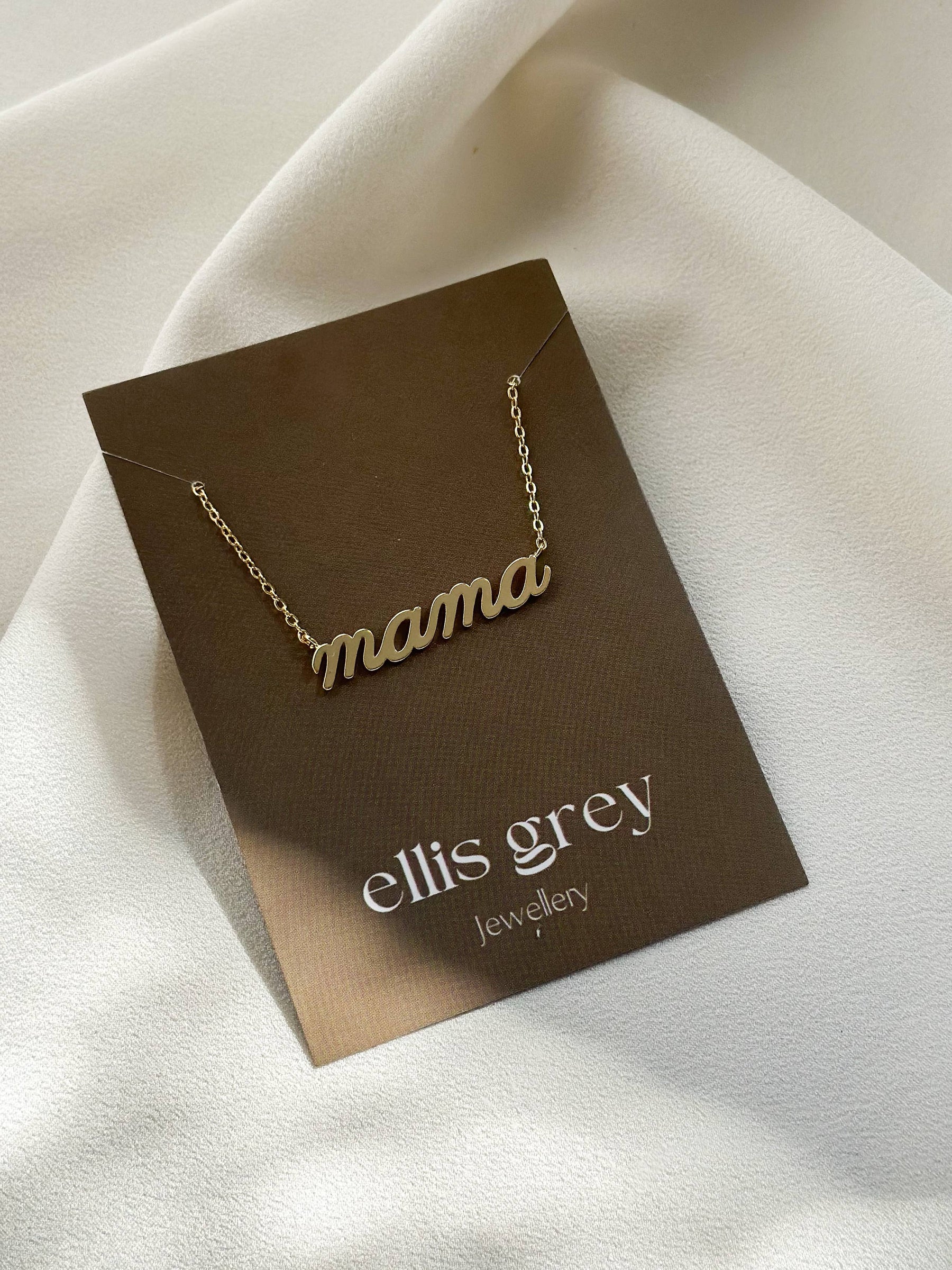 18k gold plated fine chain necklace with 'Mama' name pendant.