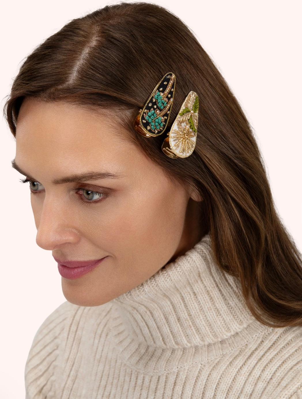 Fabric: 100% polyester velvet / Shell: metal. 10x6cm.