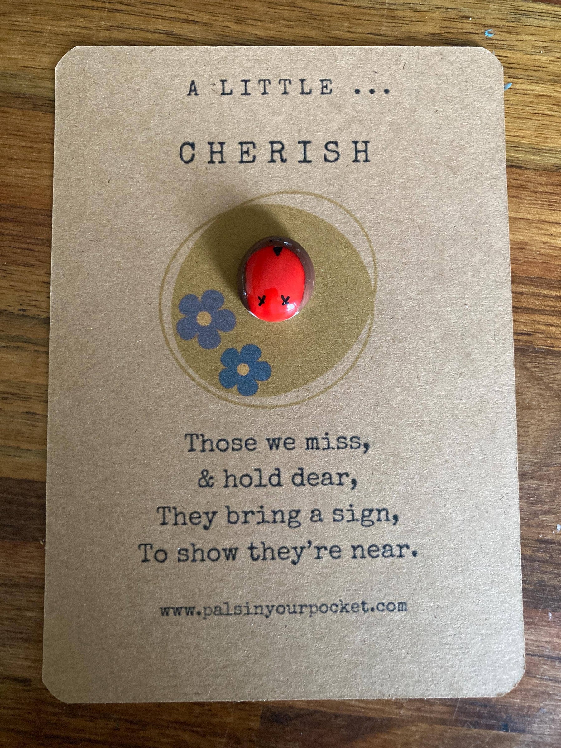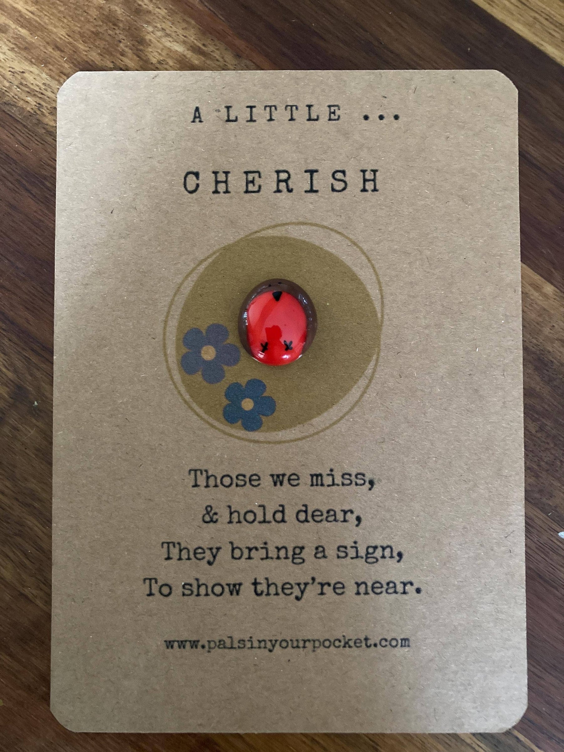 All pebbles are glass infused and hand painted tacked on to Kraft card ( easy peel) ready for placing in your pocket )