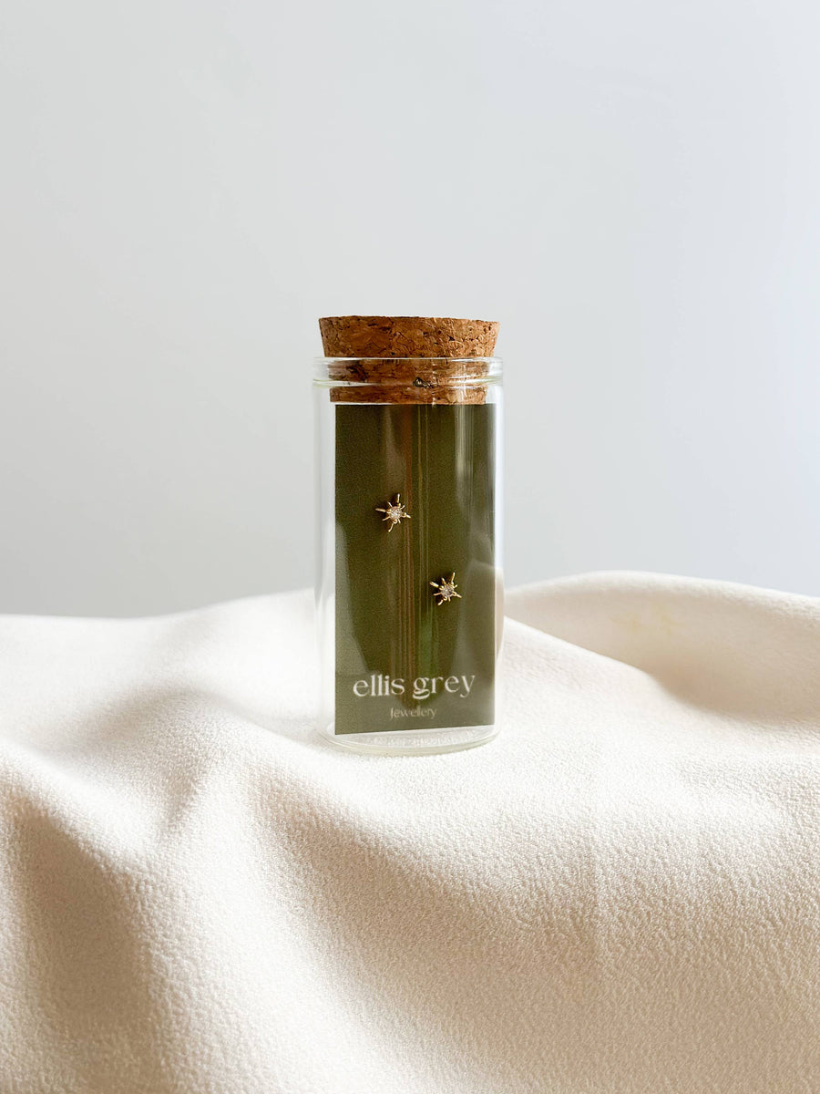 Glass Vial -18k Gold CZ Star Stud Earrings