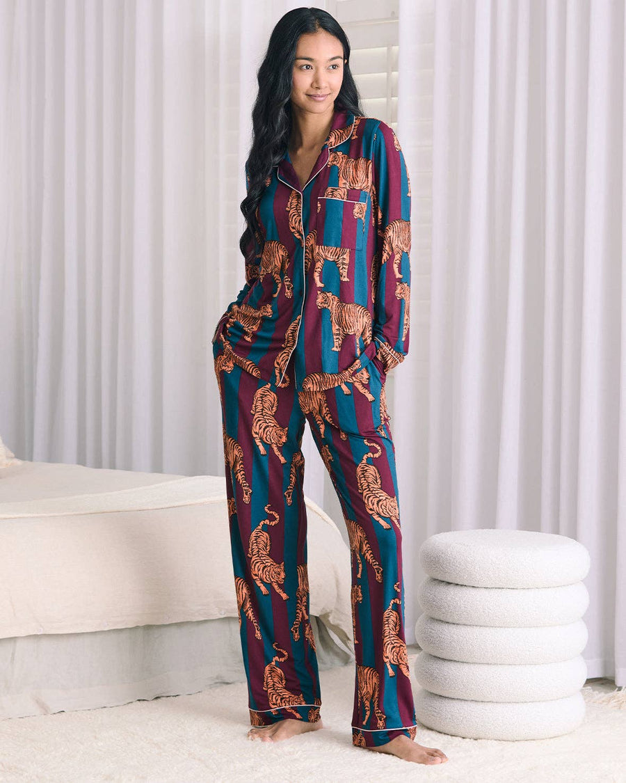 Tiger Stripe Print Long Pyjama Set: UK 6