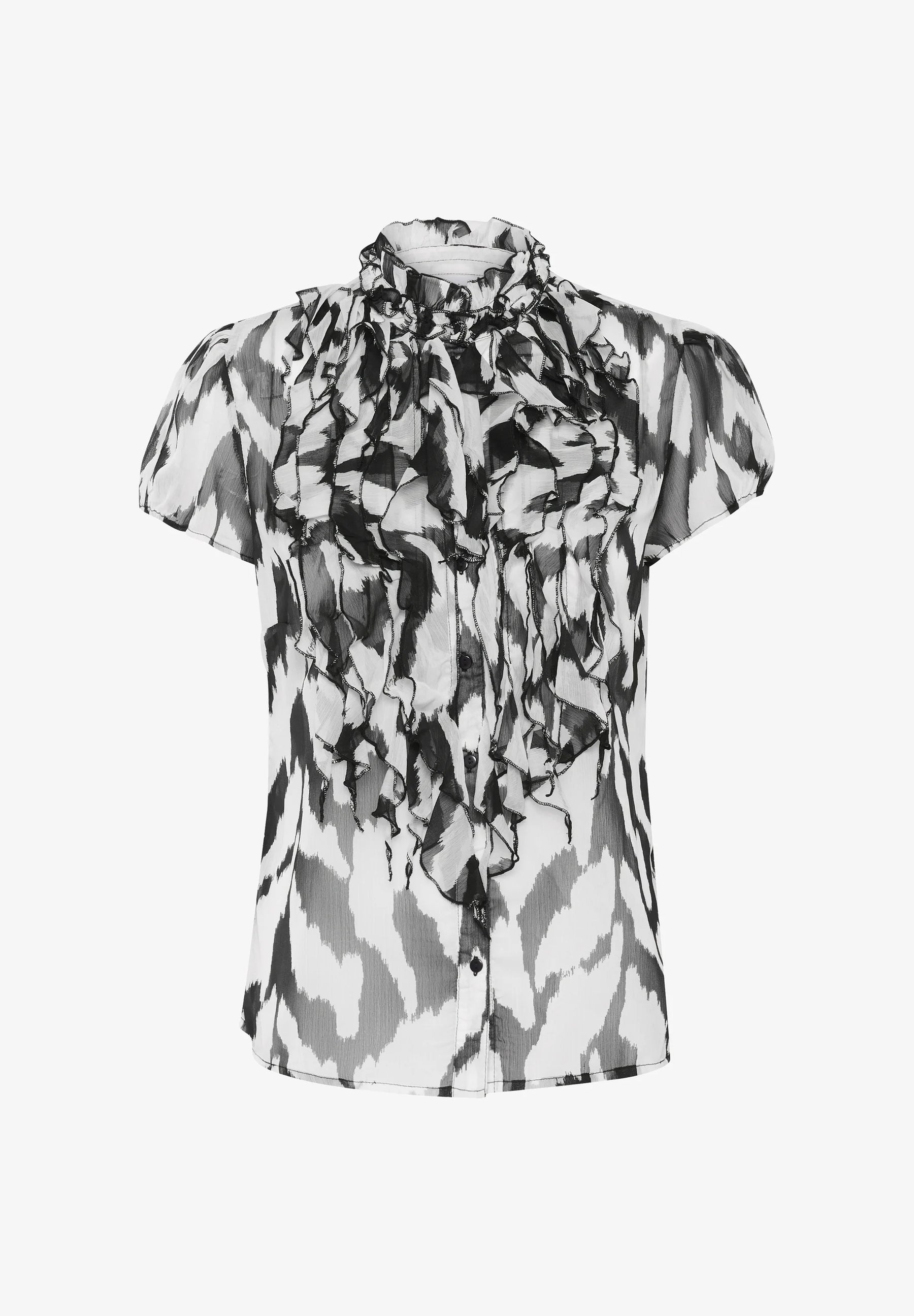 Refreshing your roster, this monochrome shirt from Saint Tropez is accented with a high neckline, short sleeves from a lightweight crinkle effect fabric.