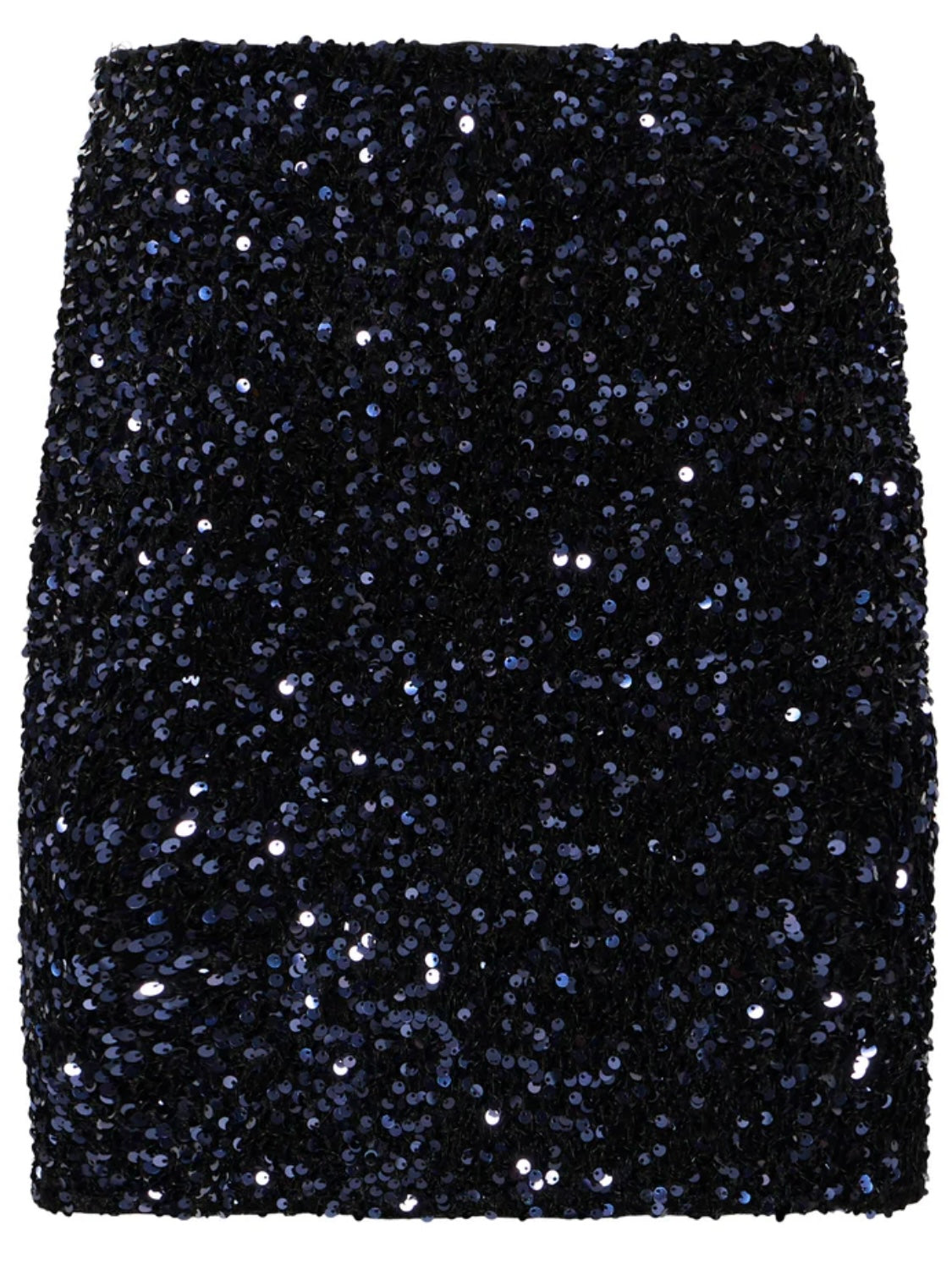 Turn heads with the BYPAILLET Skirt in dazzling evening blue sequin mix. This knitted suiting-style skirt is crafted from 100% polyester for a structured yet comfortable fit. Its shimmering finish and sleek silhouette make it the perfect statement piece for festive occasions or elevated evening looks.