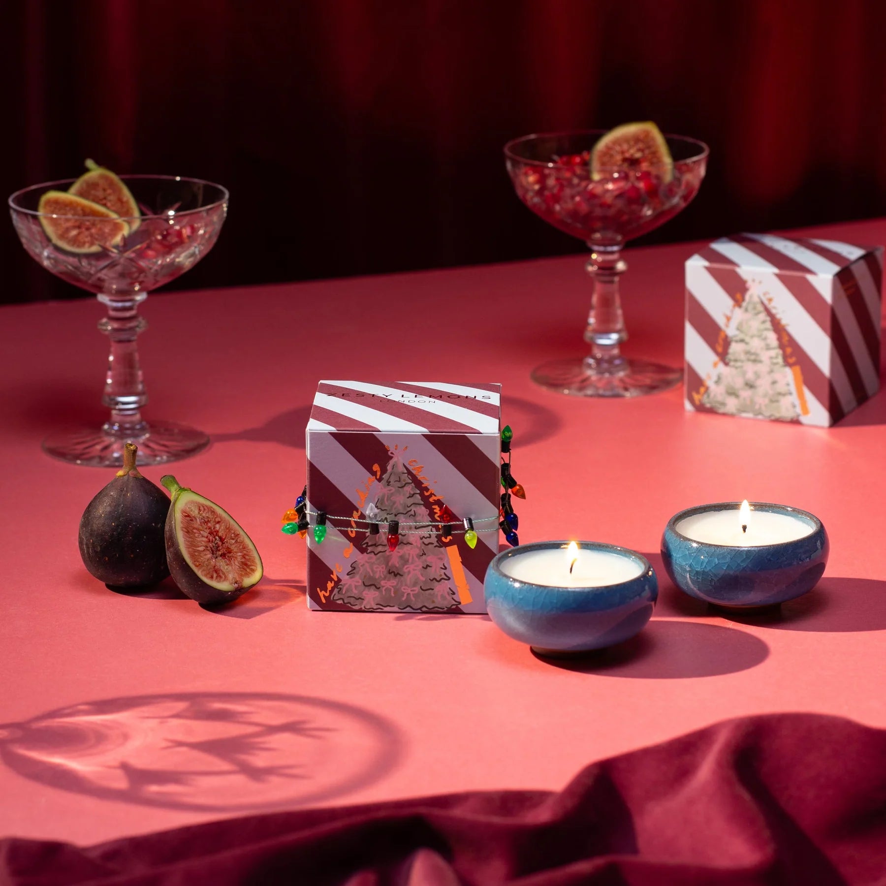 Each box contains two of our best-selling ceramic tea light vessels, filled with a cosy seasonal scent and designed to be repurposed long after the wax is gone. Presented in a playful 3D Christmas-themed gift box, containing artist illustrations and wrapped in a string of Christmas tree lights, it’s a charming keepsake in itself - no wrapping required.
