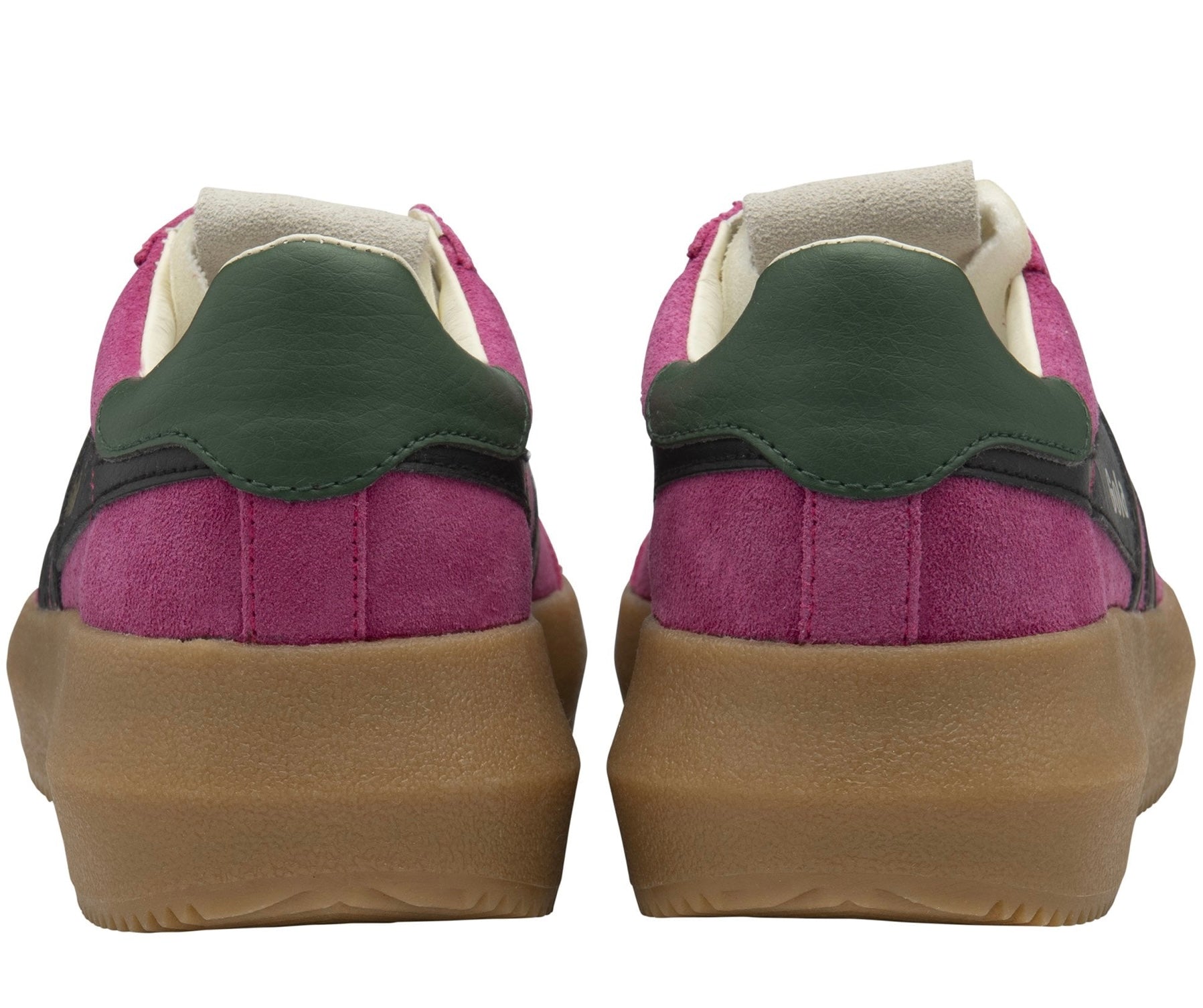 Up daytime trainer looks with Gola Athena. With its elevated sole, Gola Athena is both a versatile and super stylish women’s footwear choice; dress up or down.  An extensive suede upper colour palette means you can choose a tonal or colour clashing option to suit your wardrobe vibe, featured here in fuchsia, candy black, evergreen and gum.