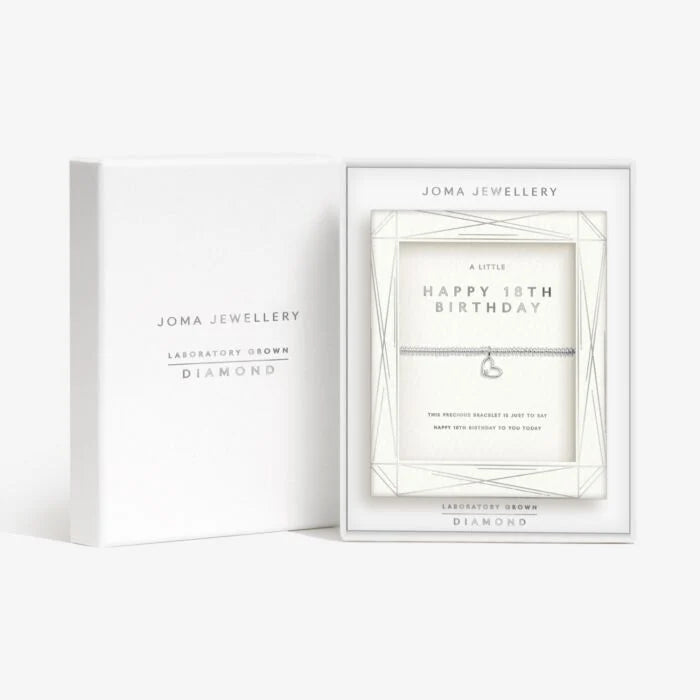 Say hello to our latest collection, Laboratory Grown Diamonds. Combining sparkle and style, with the same look and feel as natural diamonds, our Laboratory Grown Diamond A Little 'Happy 18th Birthday' Bracelet In Silver Plating is threaded with shining silver-plated beads, crowned with a heart-shaped charm, set with a Laboratory Grown Diamond, and nestled in a beautiful tiered gift box. This special collection promises elevated gifting for every occasion!