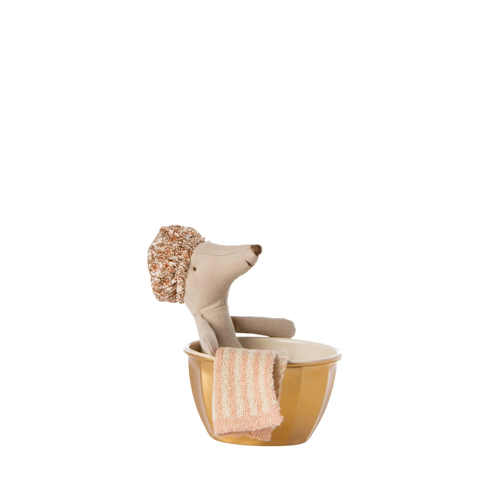 Like everyone else, this mouse loves to spend hours in the warm water in her lovely bathtub. This play set contains a golden metal bathtub, a big sister mouse, a shower cap and a towel.