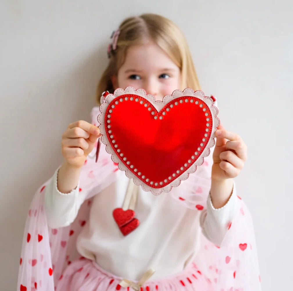 Make her heart skip a beat with our beautiful new Scalloped Heart Bag! Crafted from eye catching metallic red and finished with softly scalloped suede edging - perfect for adding a striking splash of colour to any outfit!