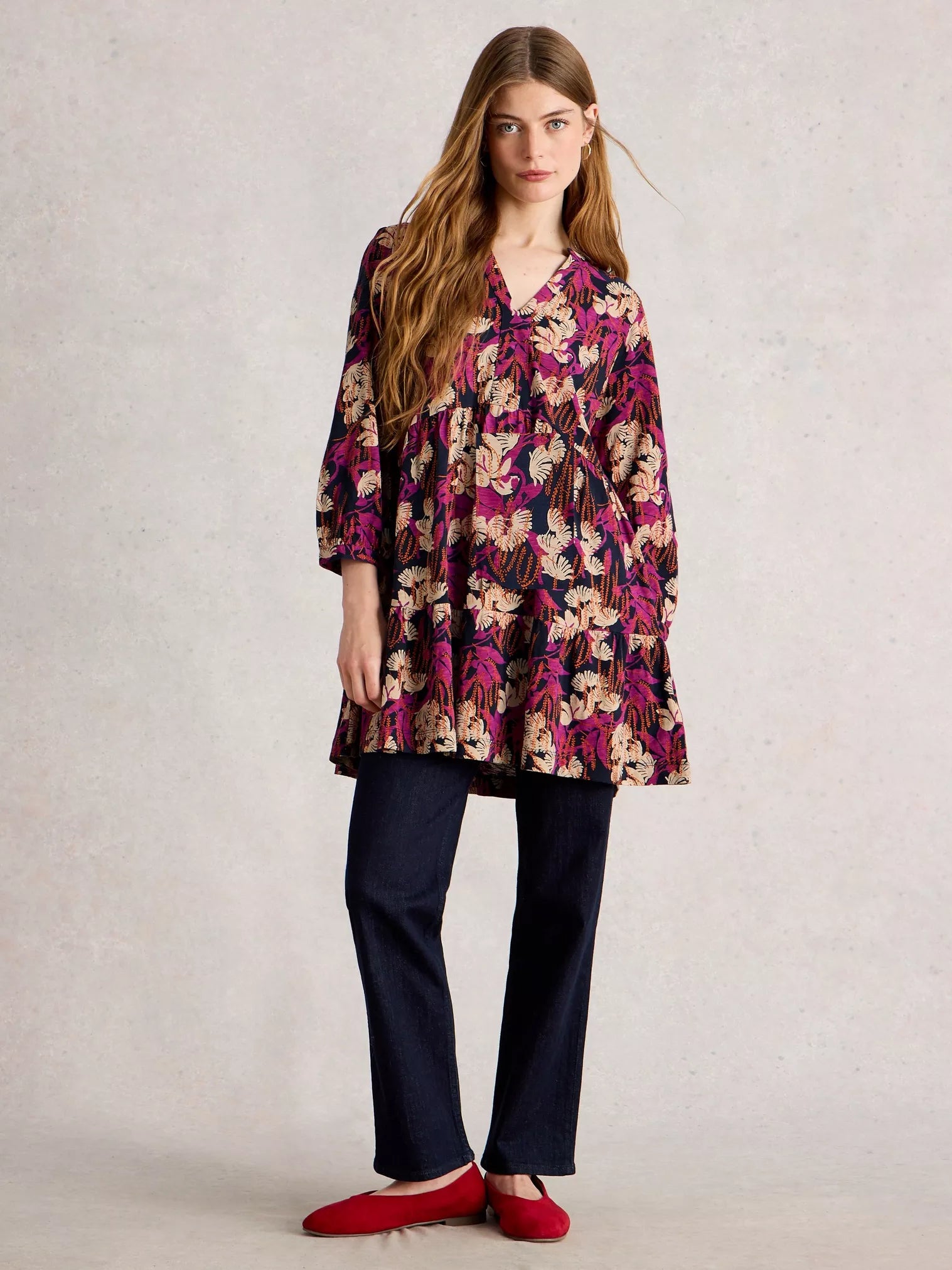 A v-neck tunic with tiered skirting. The soft cotton is just one of the reasons you’ll love wearing this.