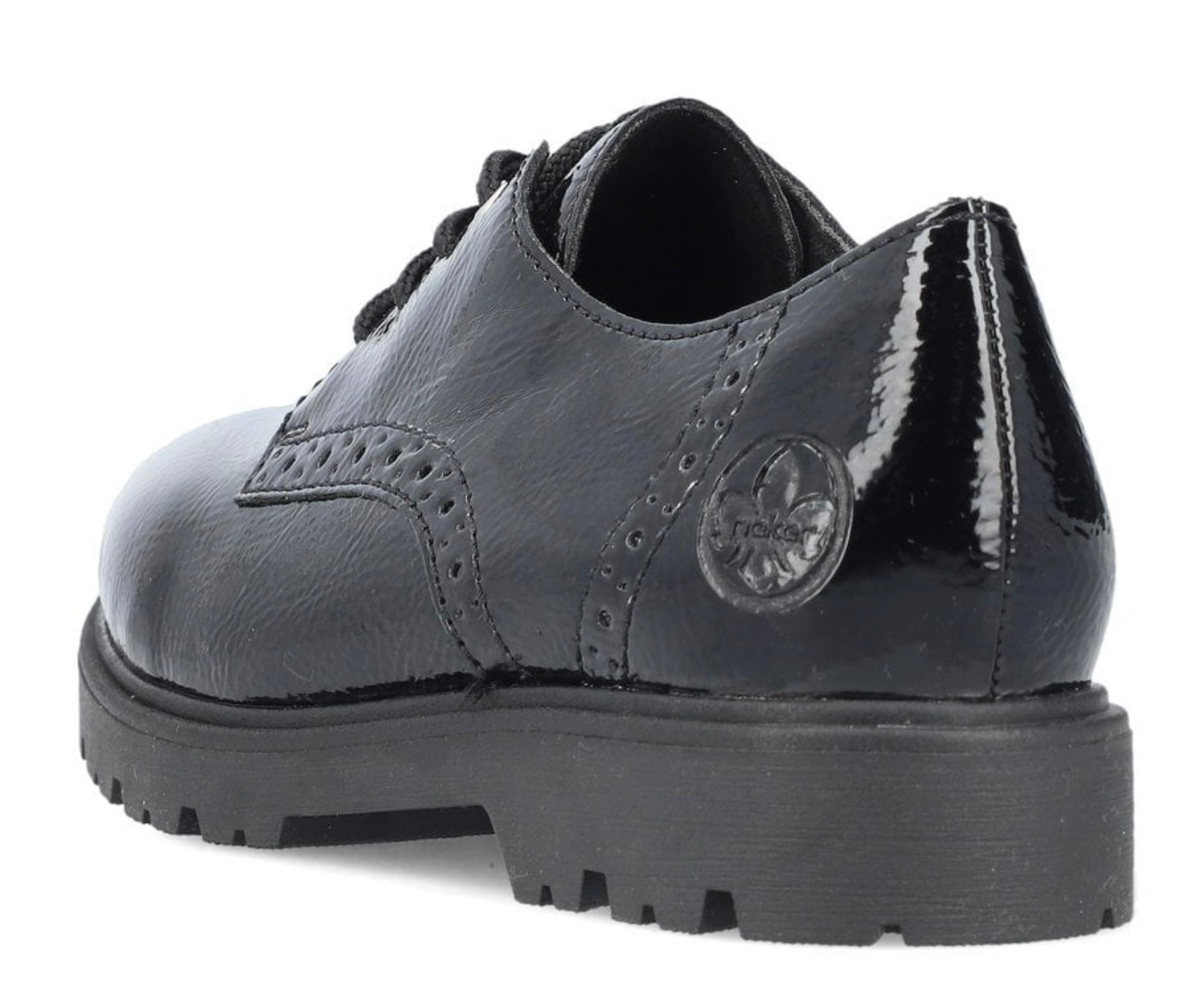 All in one lace-up shoe! These jet black Rieker lace-up shoes are the perfect companion for any occasion. The lacing also makes the lace-up shoe perfectly adjustable. With the light and grippy sole with block heel, sure-footed walking is a matter of course and the extra soft cover sole ensures improved comfort. Sought, found! Features: Width Fitting: F Lining: Water Resistant: Leather: Insole: Soft insole Feature Summary: