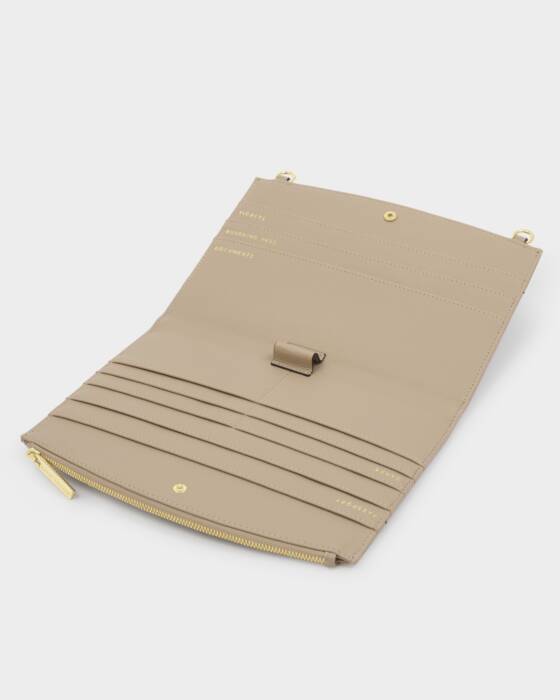 Our Travel Organiser Crossbody in Light Taupe features an elevated curved design, complete with internal pockets and card slots to neatly store your travel essentials, including your passport, boarding pass, and ID. It even includes a convenient pen loop. Each section is thoughtfully labelled to help you find your belongings quickly, while the secure zip and popper closure provides extra peace of mind throughout your journey.