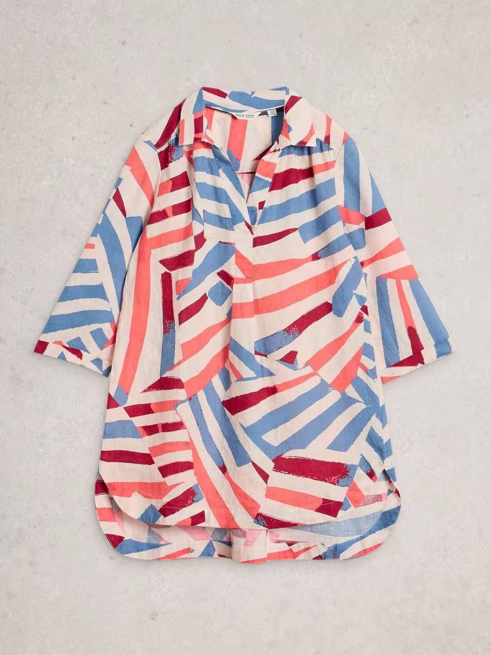 We're pairing this collared tunic with some jeggings. A draped jacket and ankle boots. Maybe some layered jewellery, too.