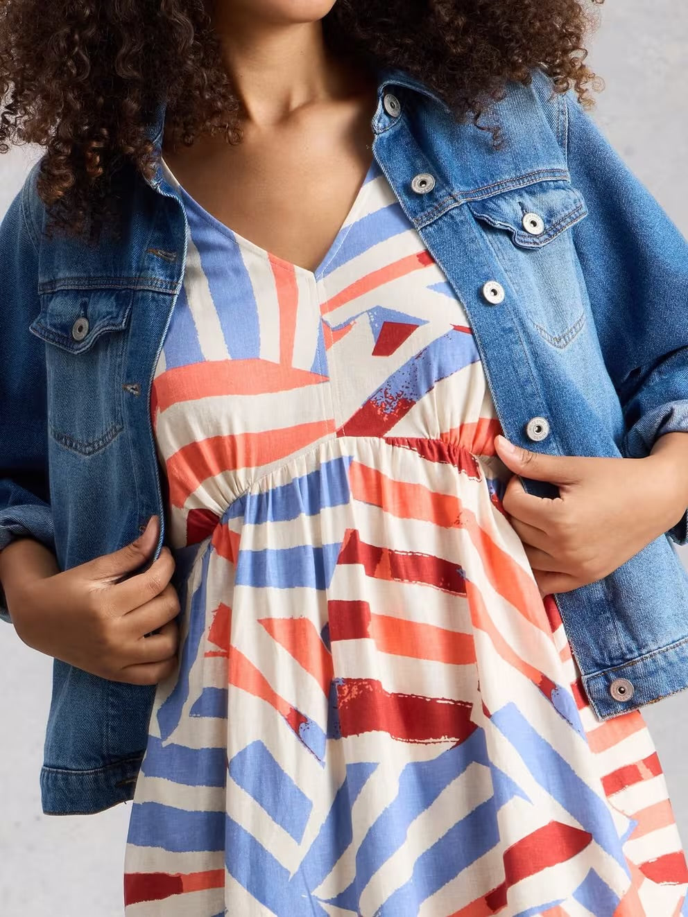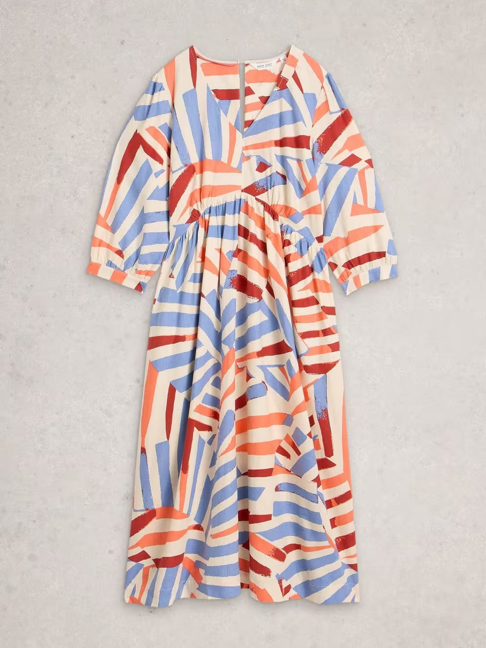 The Lucy dress is the perfect midi (not that we’re biased or anything). It has a lovely drapey shape with a curved empire waist that’s gently elasticated at the back. ¾ length sleeves, a classic v neckline and a print that makes us want to be by the sea.