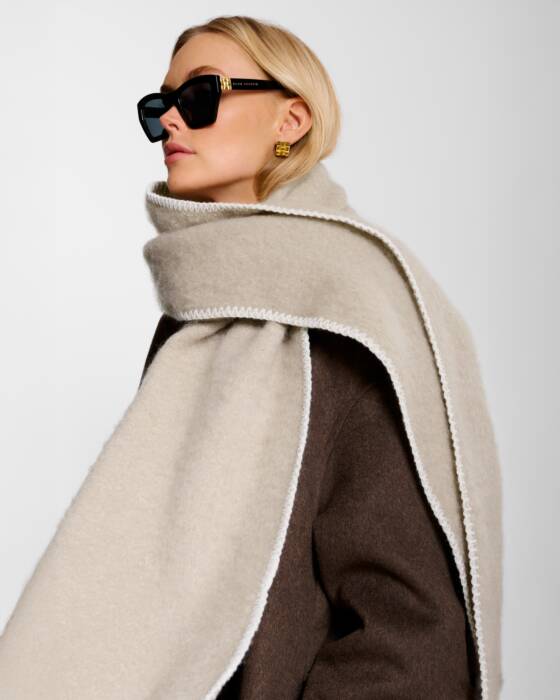 Wrap up in elegance for any occasion with our Whipstitch Scarf in Taupe, featuring a super-soft material with beautiful whipstitch edge detailing and our signature gold-tone logo bar. The perfect accessory for year-round warmth and comfort.
