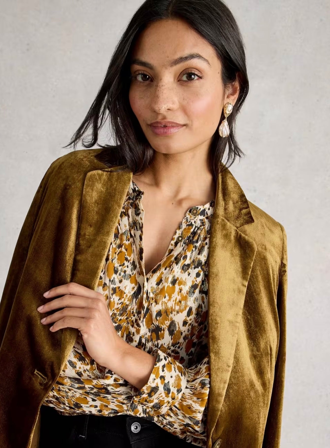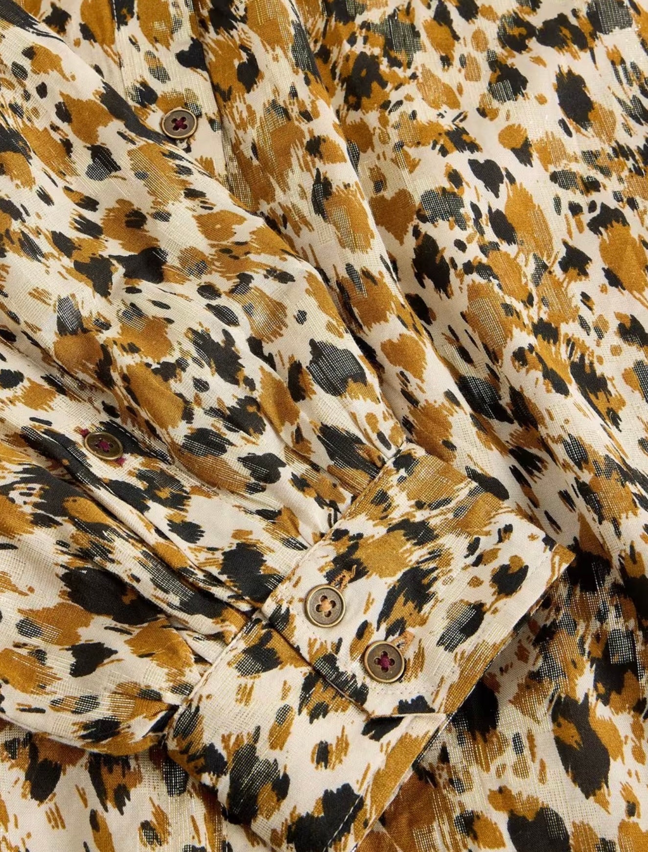 We just love the little details on this lurex top. Like the cuffs. And the pattern that's part animal print, part painting. (If you look closer, you'll see a bit of shimmer too.)