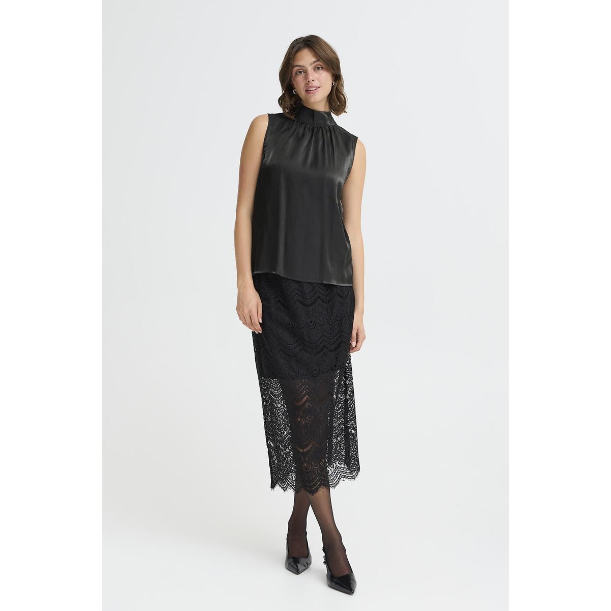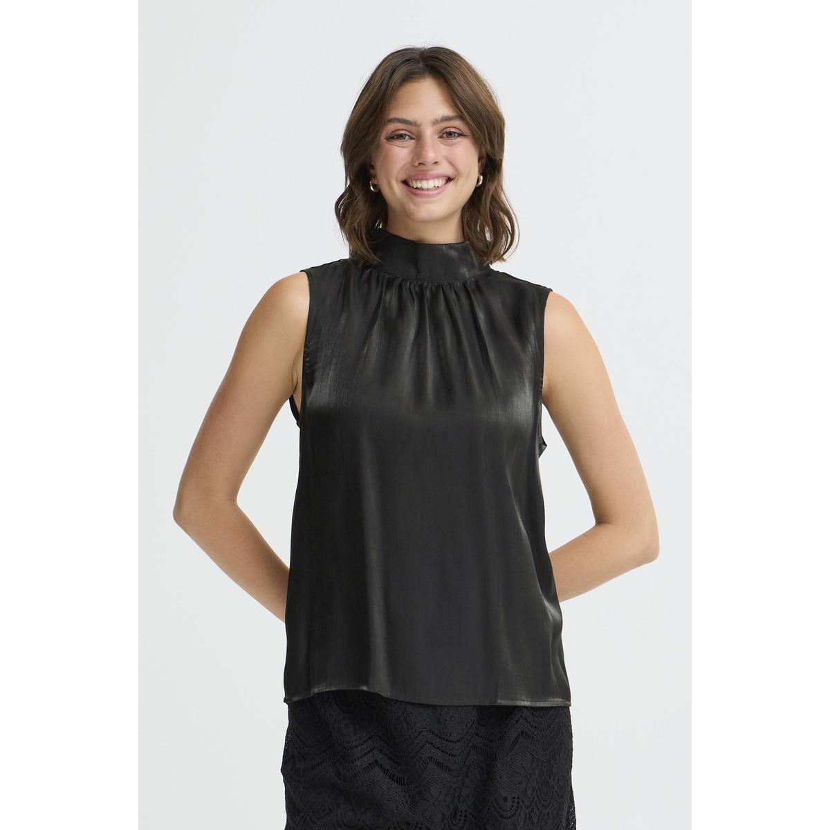 This women's tank top has a relaxed fit with a high neck and subtle gathered details. Designed to combine comfort and contemporary style, it is perfect for a versatile outfit from day to night.