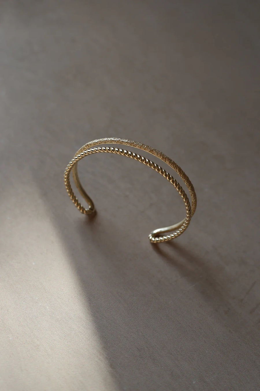 Brass base plated with Gold. Finished with an anti-tarnish, water resistant coating.
