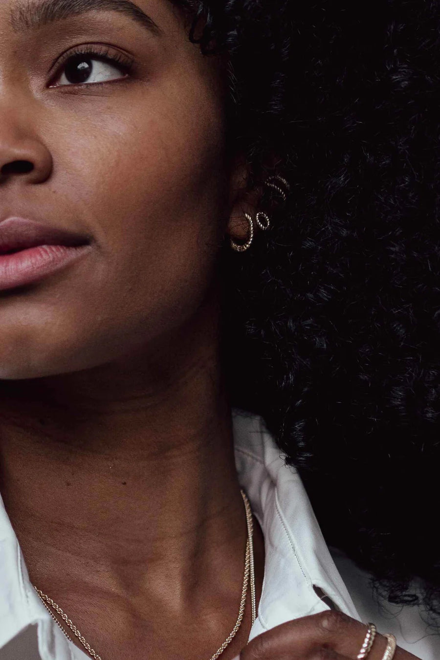 Brass base plated with Gold. Finished with an anti-tarnish, water resistant coating.