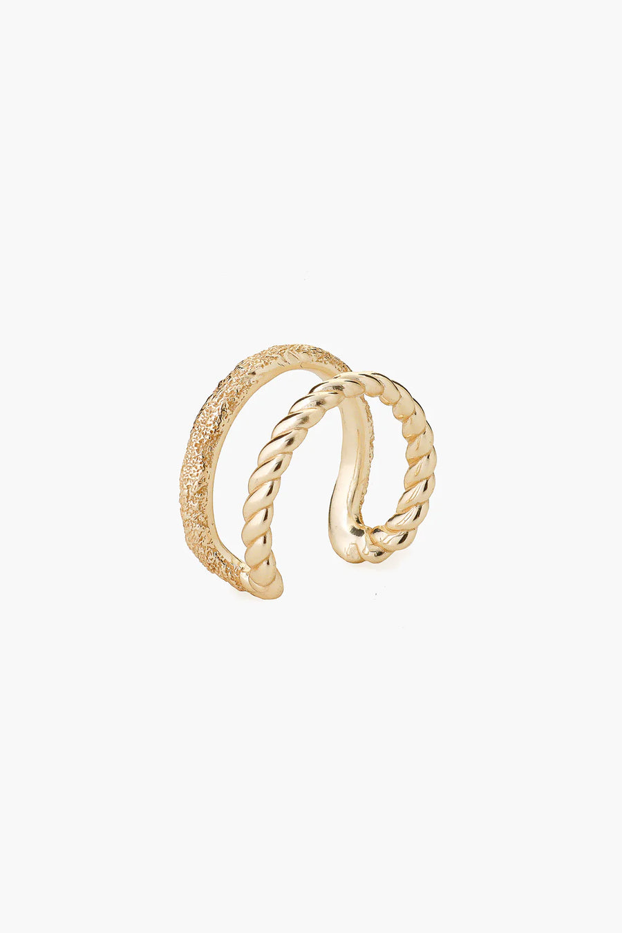 Brass base plated with Gold. Finished with an anti-tarnish, water resistant coating.