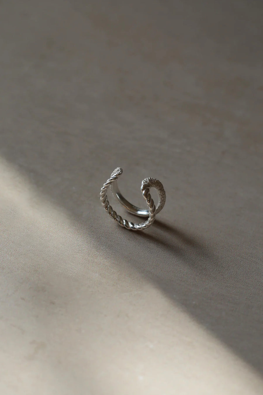 Brass base plated with Sterling Silver. Finished with an anti-tarnish, water resistant coating.
