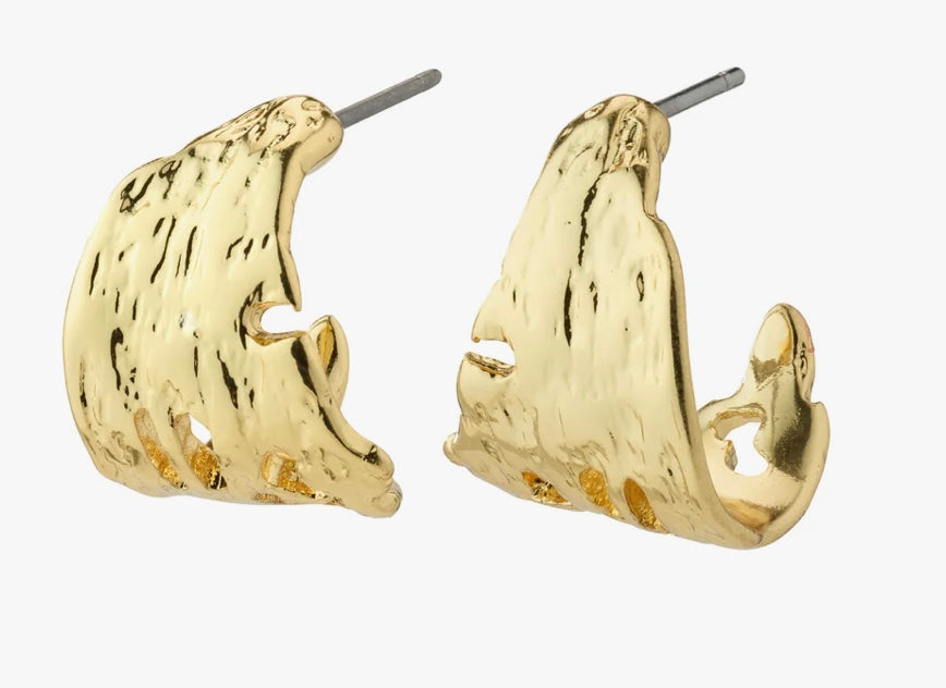Stay unique with the gold-plated earrings from Pilgrim, a set of recycled items made from a min. of 75% recycled material. The irregular surfaces and wavy structure of the earrings create a natural and handcrafted feel. A set of dynamic, wide semi hoops with rustic surfaces that add a bit of edge to your styles. Wear them as your new favourite accessories to winter's outfits.