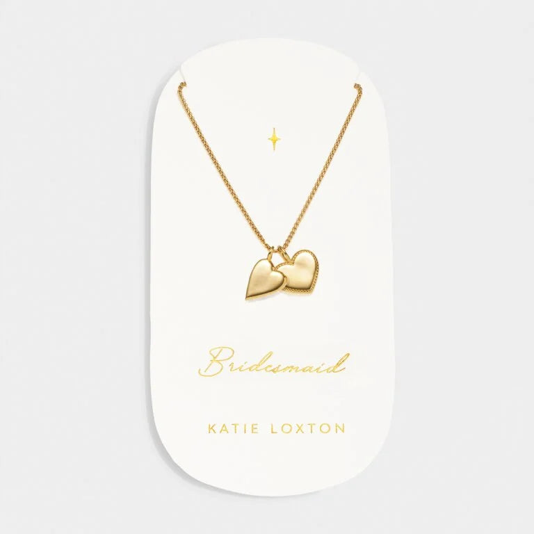 Whether you're the bride or part of the bridal party, our 'Bridesmaid' Waterproof Gold Bridal Charm Necklace is a big day essential! Thoughtfully designed in 18K Gold PVD Coating, this style is waterproof, sweat proof and life proof, meaning the lucky recipient can wear it long after the wedding day has been and gone! This sentimental necklace holds two heart-shaped charms and comes perfectly presented on a premium card that is printed with the sentiment.