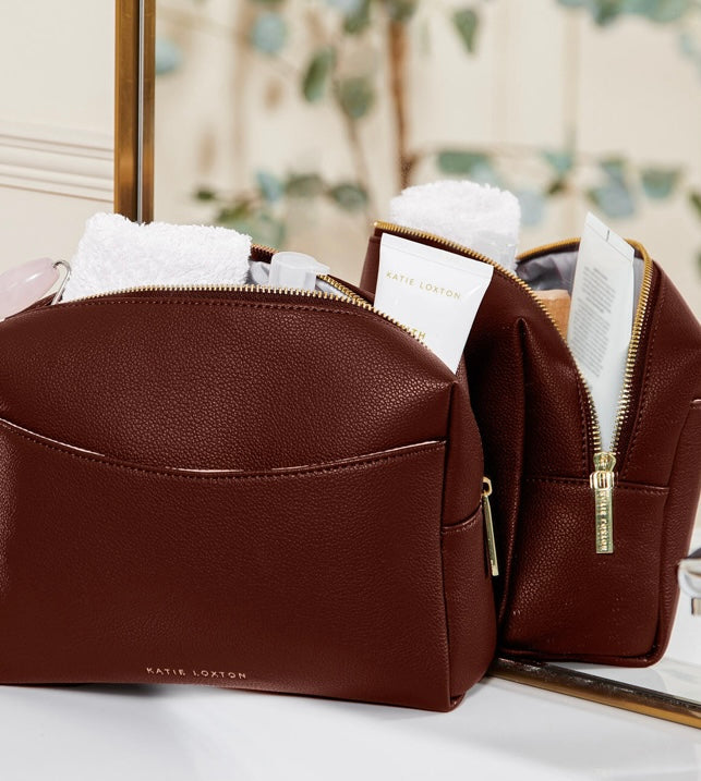Add some charm to your homeware selection with our Secret Message Wash Bag in cacao! Featuring a vegan leather design, classic square silhouette and the hidden sweet sentiment 'Look For The Magic Live For The Moments', written in golden embroidery. Your customers can store their self-care essentials in the chicest way possible. Plus, they look even more gorgeous when paired with our matching makeup bags!