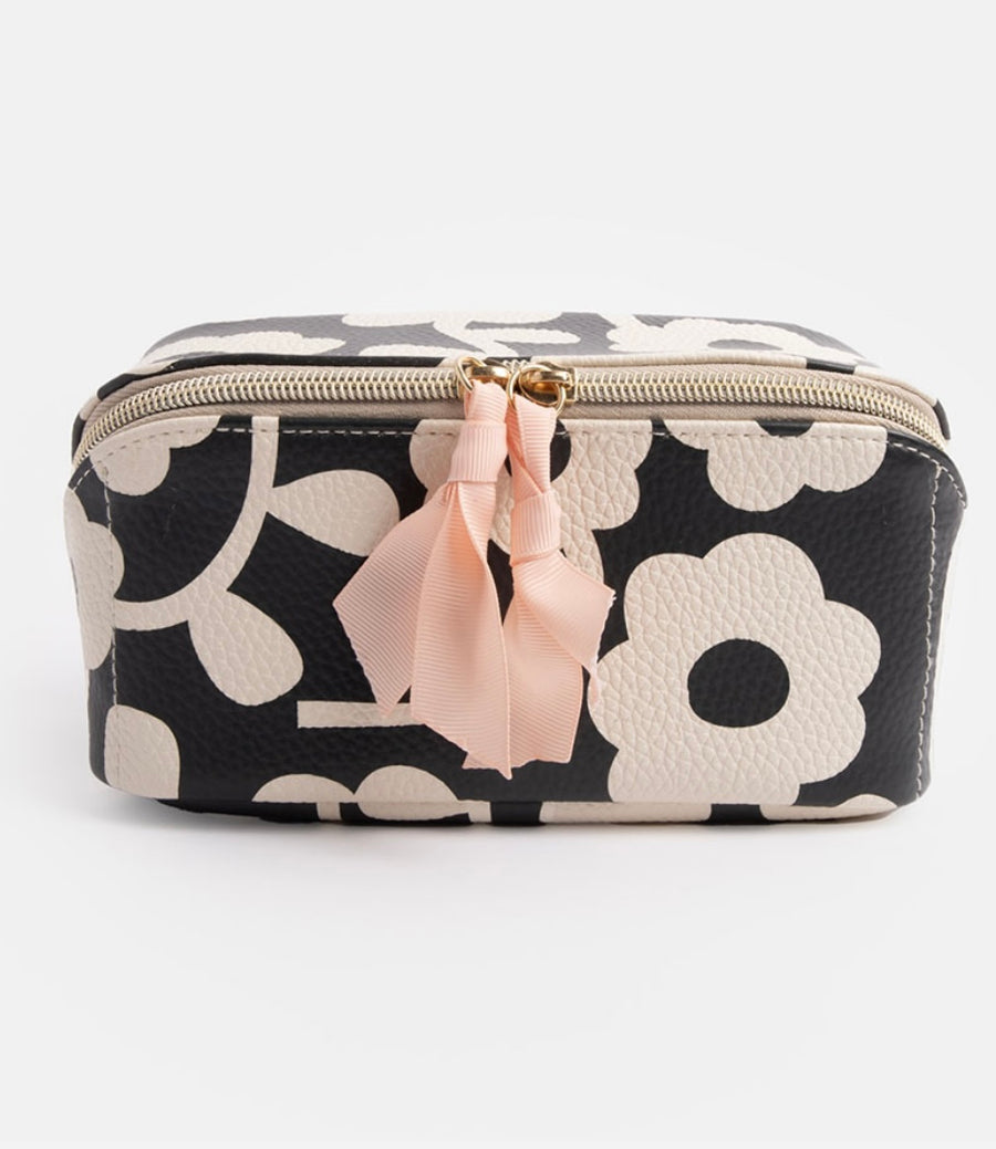 Such a simple idea that makes finding your toiletries or makeup so much easier. Perfect for every day use, on holiday or a weekend away. The charcoal and white floral print has a pink ribbon puller which is attached to the silver zip.