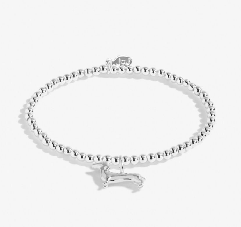 Discover the magic of our adorable Children's A Little collection. This 'Silly Sausage' Bracelet makes for the perfect present for every little darling. Featuring silver-plated beads with a stretch design, and a sparkling dachshund charm. Wrapped around a stylised card and stamped with an adorable poem to be forever cherished.