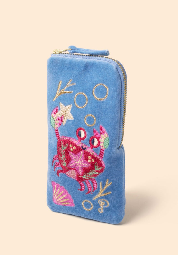 CORNFLOWER BLUE CRAB VELVET SUNGLASSES POUCH