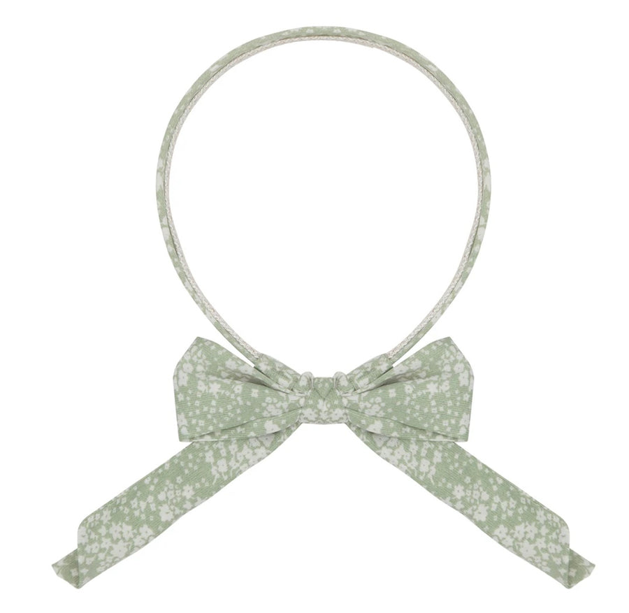 Style savvy little ones will just love our brand new scarf tie alice band! Featuring a beautiful soft green, ditsy print fabric bow to tie snugly under the hair, this pretty piece will effortlessly transform any look!