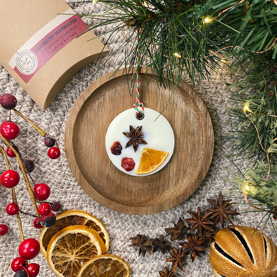 Festive and fragrant hard wax tablets, individually hand crafted using natural soy wax, festive fragrances and decorated with aromatic dried botanicals,