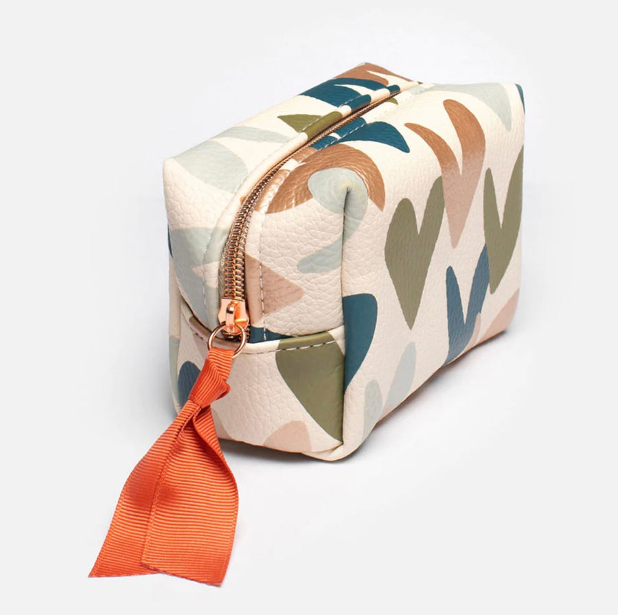 Our best selling cube cosmetic bag style has a new mini partner. Reduced in size to be the perfect on the go make up storage, this lovely multi hearts cosmetic bag has a practical wipe down contrast print lining. Surprisingly spacious for its mini size. it is perfect for on the go or on the dressing table.