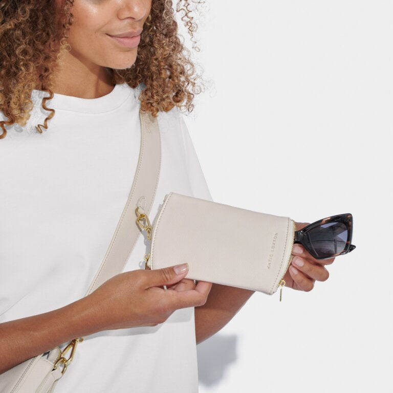 We're super excited for you to meet our Clip-on Sunglasses Case Collection! This summer-ready style is carefully designed from soft vegan leather and adorned with opulent gold-tone hardware, making it a luxurious addition to any accessory game. The seamless clip effortlessly attaches to your favourite Katie Loxton handbag or travel tote, and the secure zip-up design means sunglasses are protected from scratches, damage, or being misplaced.