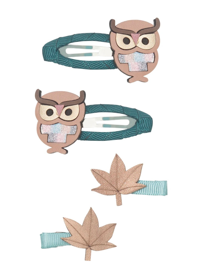 Twit-twooo! Our super fun Oscar owl clip pack is sure to raise eyebrows! With two mini alligator clips adorned with gold, autumnal leaves and two larger clips featuring Oscar himself, it's the perfect pack to mix and match whatever their style!
