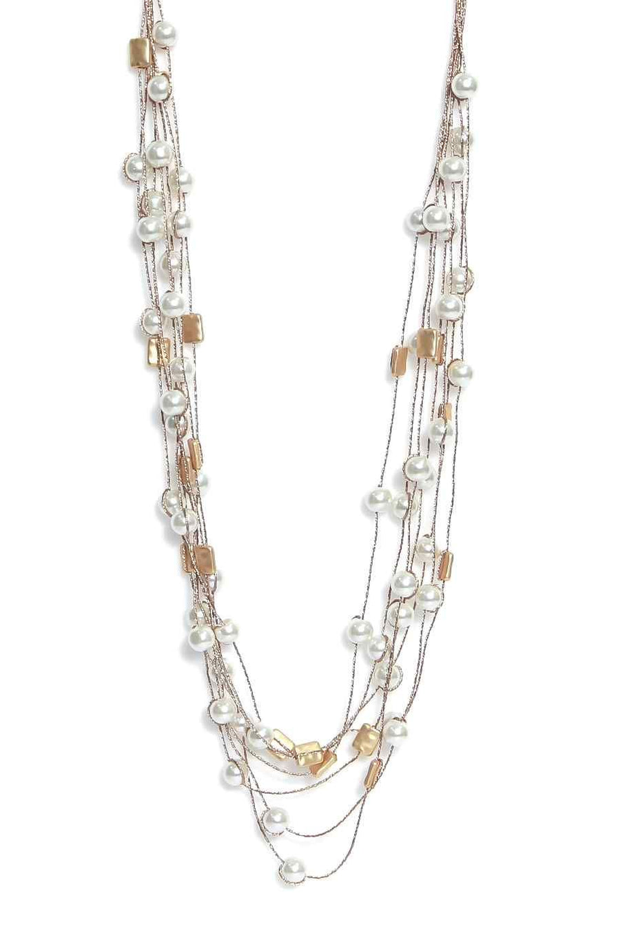 PEARL AND GOLD MULT STRAP LONGLINE NECKLACE