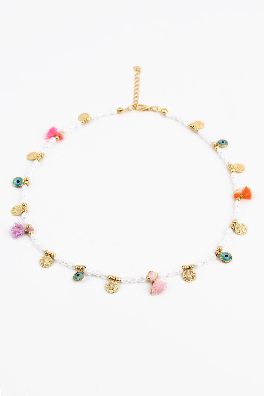 Perfect for summer - this boho necklace features vibrant tassels and beautifully made charms.
