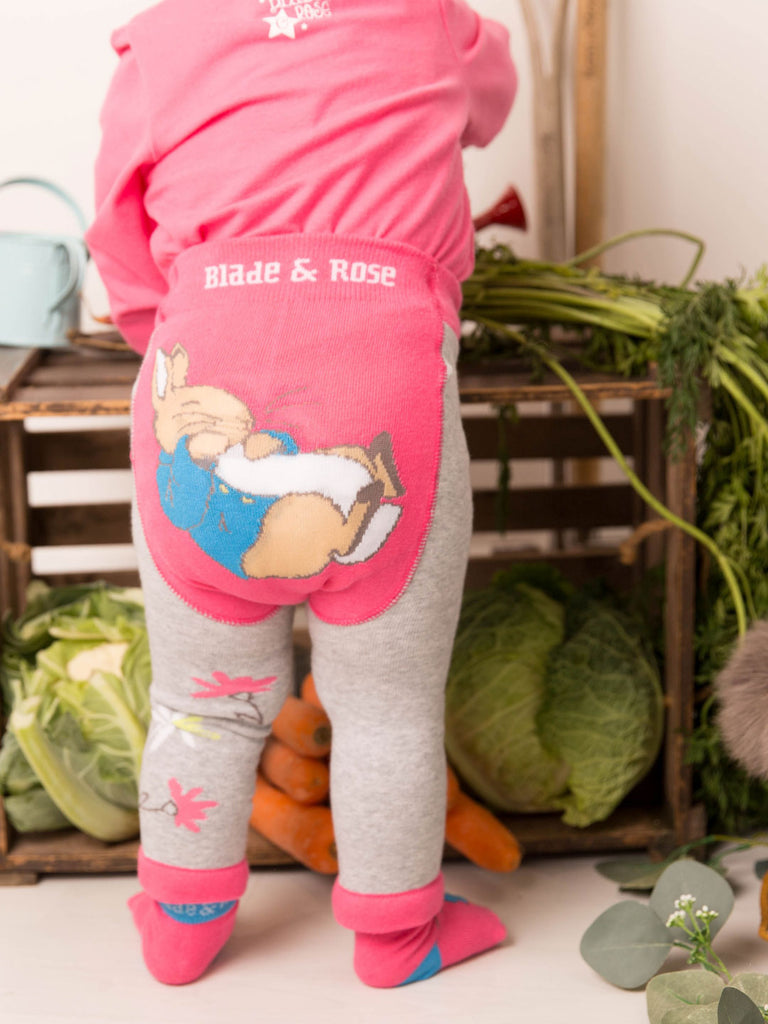 Featuring a snoozy Peter Rabbit on the bottom, and another on each leg, these leggings are enhanced by the pretty flowers growing up them.‚