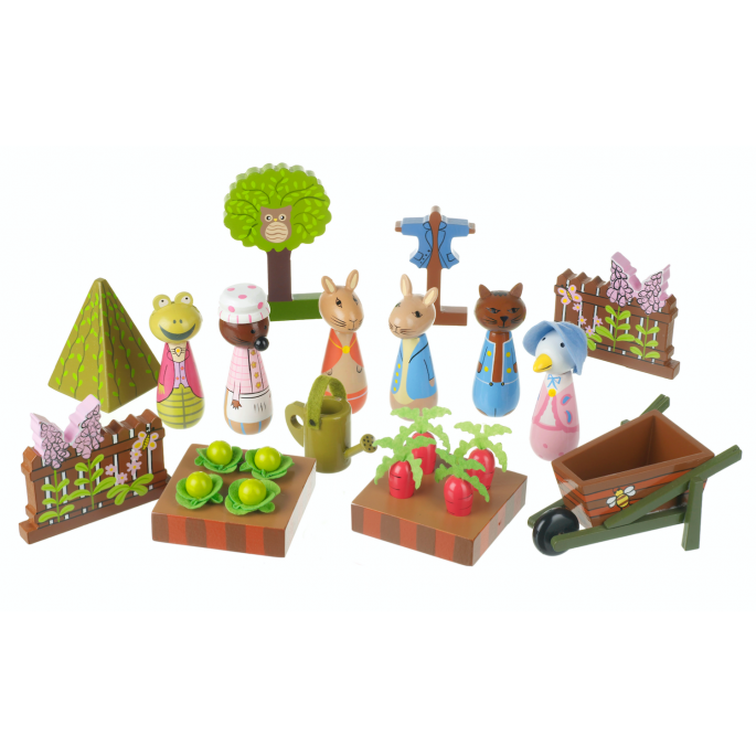 This beautiful play set is based on Mr McGregor's garden. With all of our favourite characters to play with this set is sure to keep your kids entertained for hours. It comes with plenty of different elements for little hands to grasp. A wonderfully, colourful and imaginative traditional wooden toy that will to hardly see the inside of the toy box.