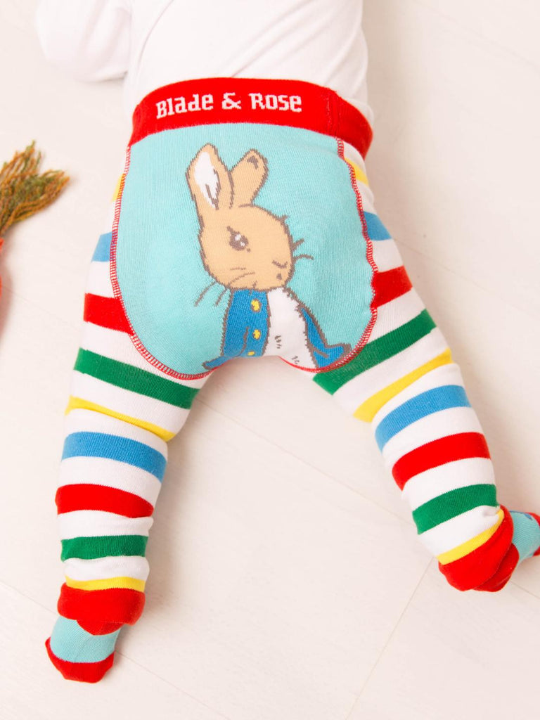 Bold and eye-catching, wide striped rainbow leggings with a cheerful Peter on the bum. These stretchy leggings were designed with little explorers in mind.Â