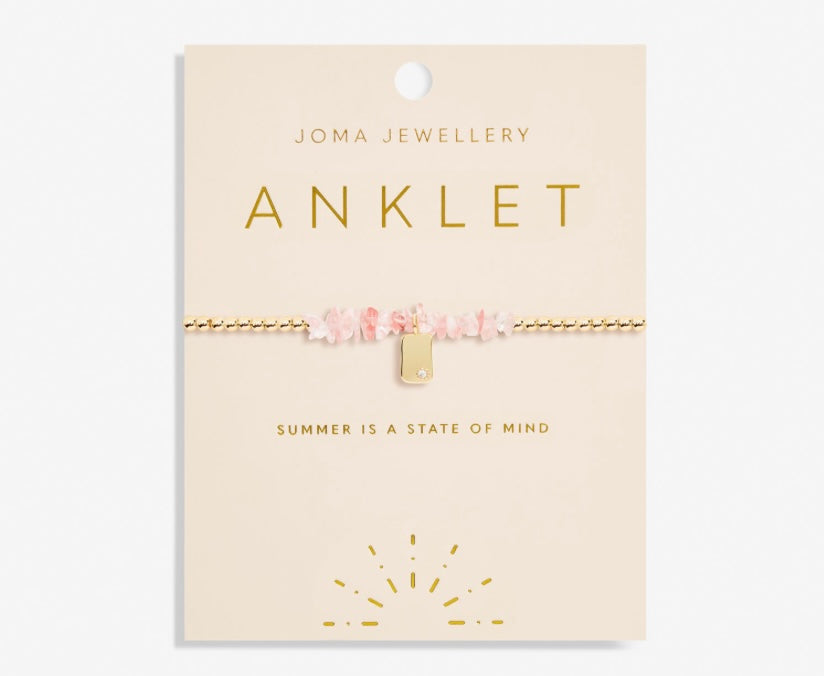 Now threaded with semi-precious gemstones, silver-plated and gold-plated charms, and with a stretch design for the perfect fit every time, our pretty anklets are the style you need to kickstart the sunny season. Wrapped around a blush pink and gold card, our Pink Crystal Anklet In Gold Plating comes ready to be gifted or added to your own collection as you make amazing sun-soaked memories.